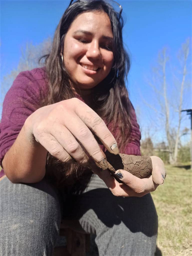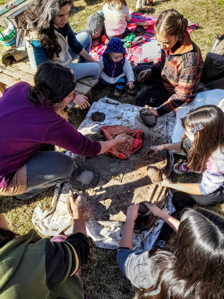 «Estuvimos amasando la arcilla que en el encuentro anterior dejamos descansar después de limpiarla», contó Florencia Borowski del Taller Amaru, y detalló: «Preparamos antiplásticos como ceniza, chamote y arena y preparamos distintas pastas para observar como se comportan».