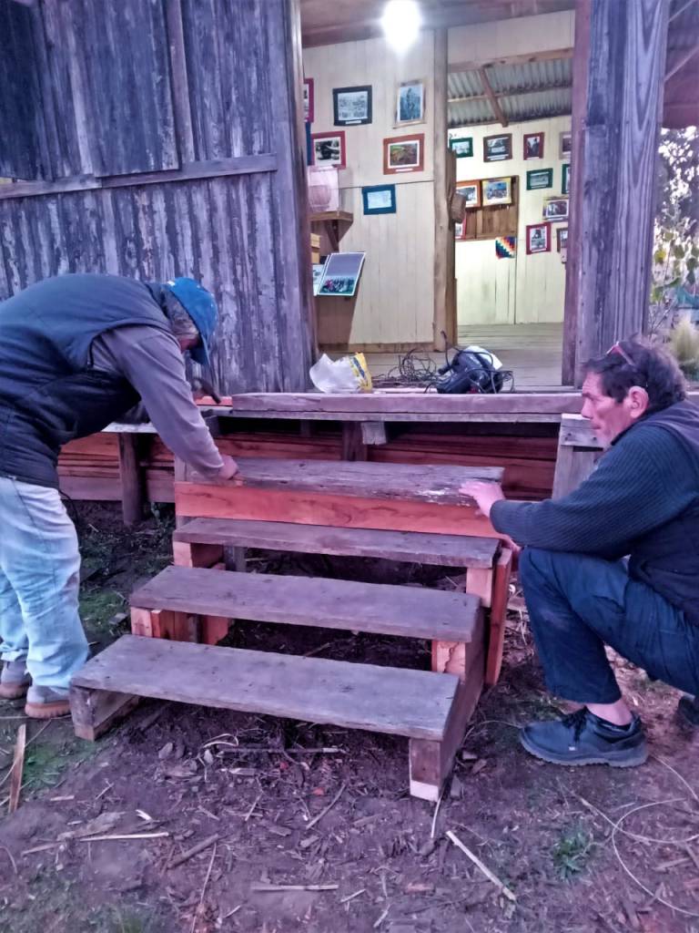 Entre otras tareas, se siguió la reconstrucción del quincho, se rearmó la escalera del Museo y se ordenó la leña sobrante de la ceremonia por la renovación de la naturaleza.