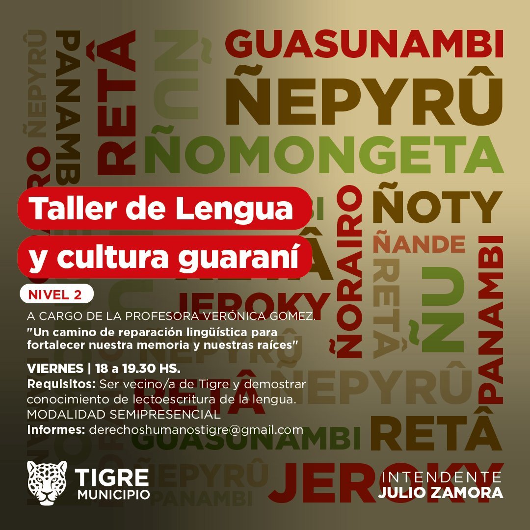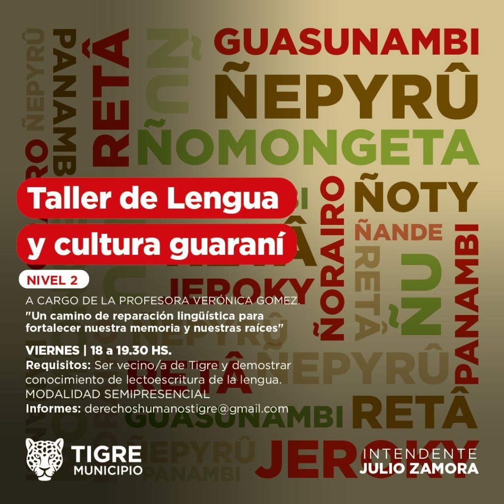 El Municipio de Tigre informó el pronto inicio del segundo nivel del Taller de Lengua y Cultura Guaraní, destinado a los vecinos y vecinas del distrito que tengan conocimientos básicos en lectura y escritura del idioma, y/o quienes hayan culminado el curso inicial.