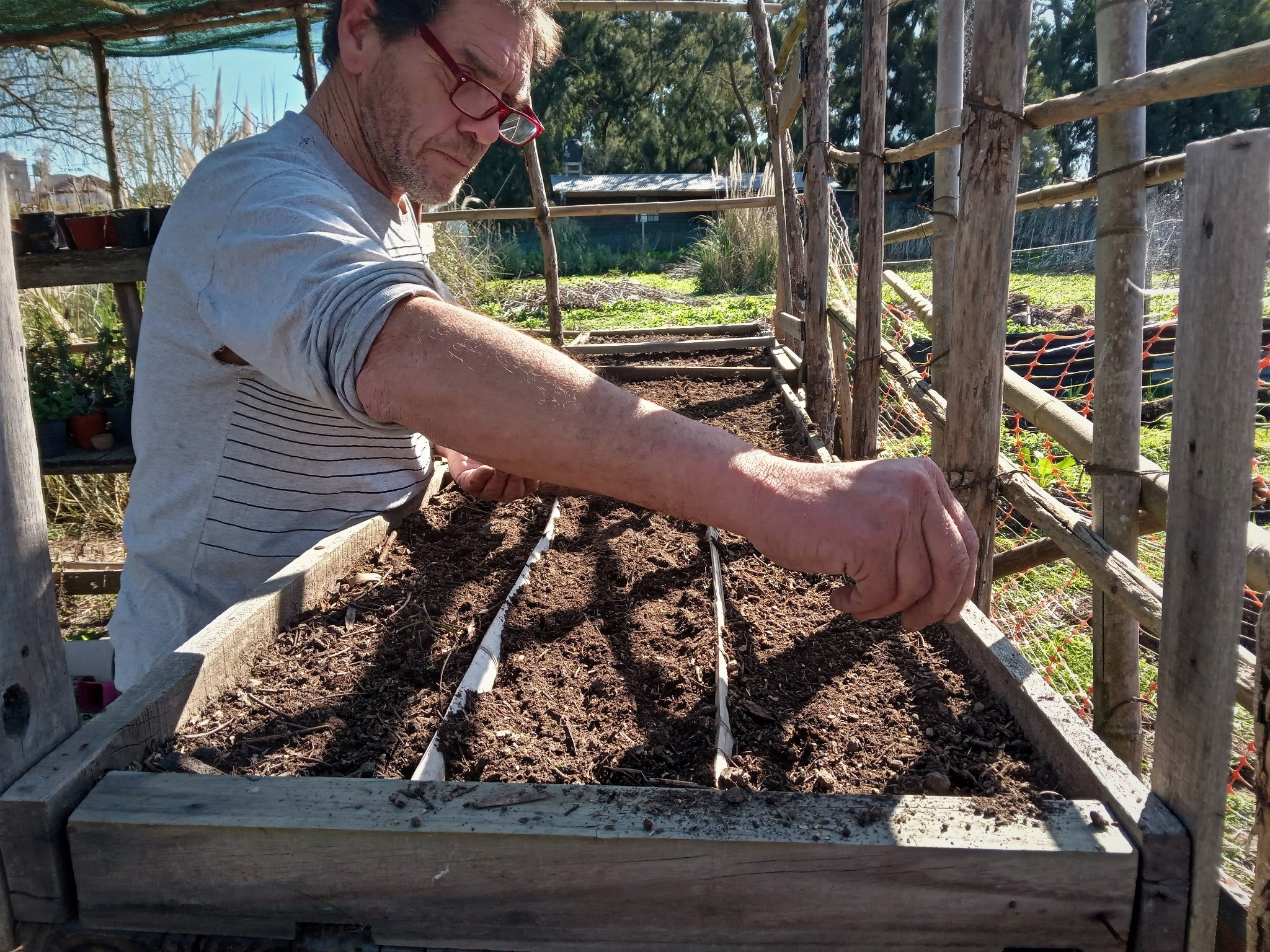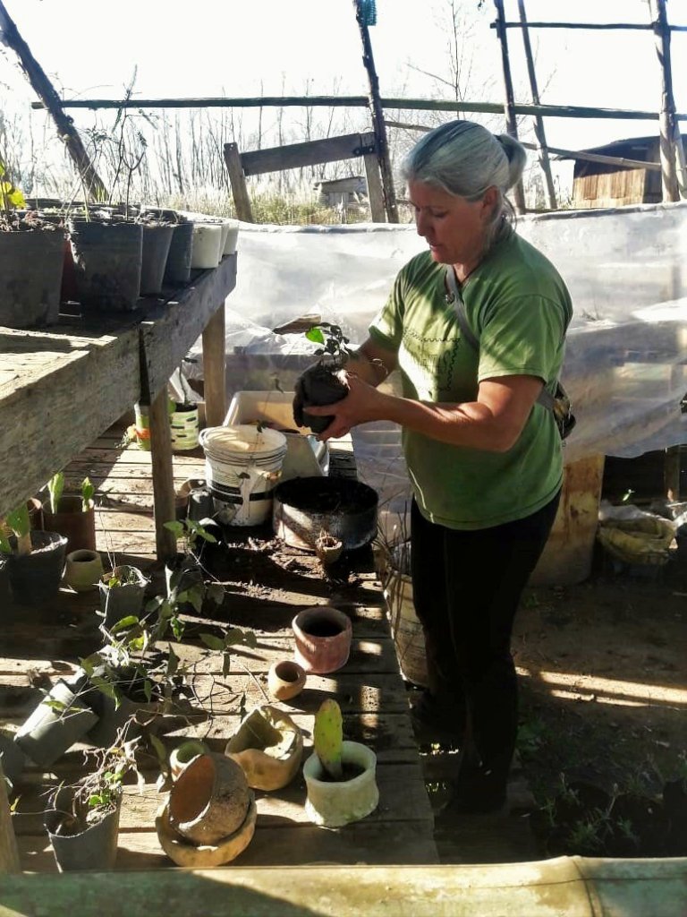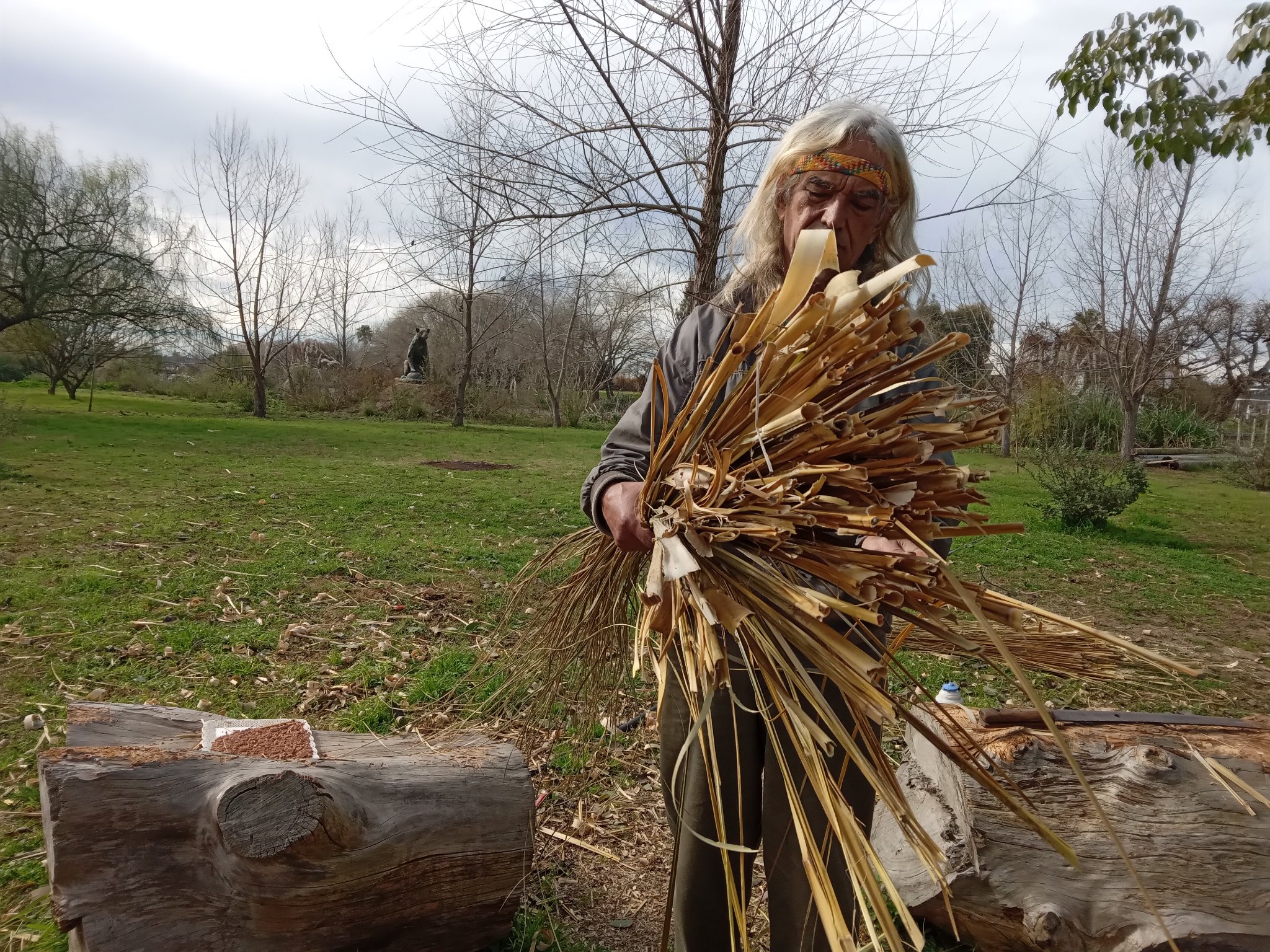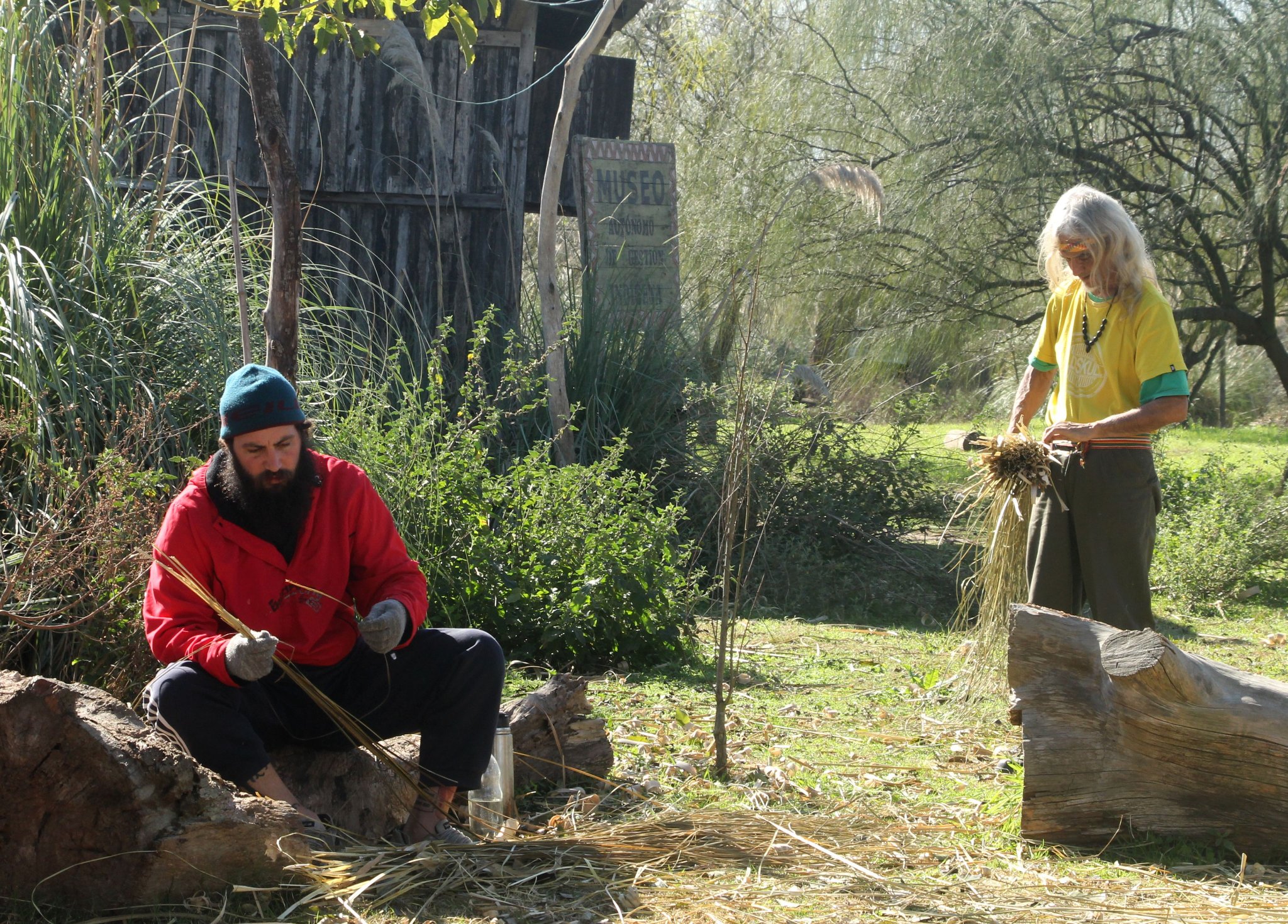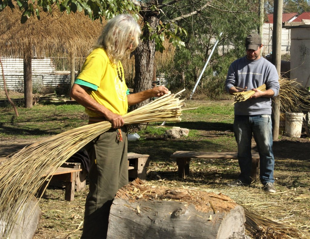 Entre otros trabajos realizados por los integrantes de la comunidad, se preparó paja brava para la reconstrucción del techo del quincho y se hicieron tareas de mantenimiento en la huerta y en el vivero.
