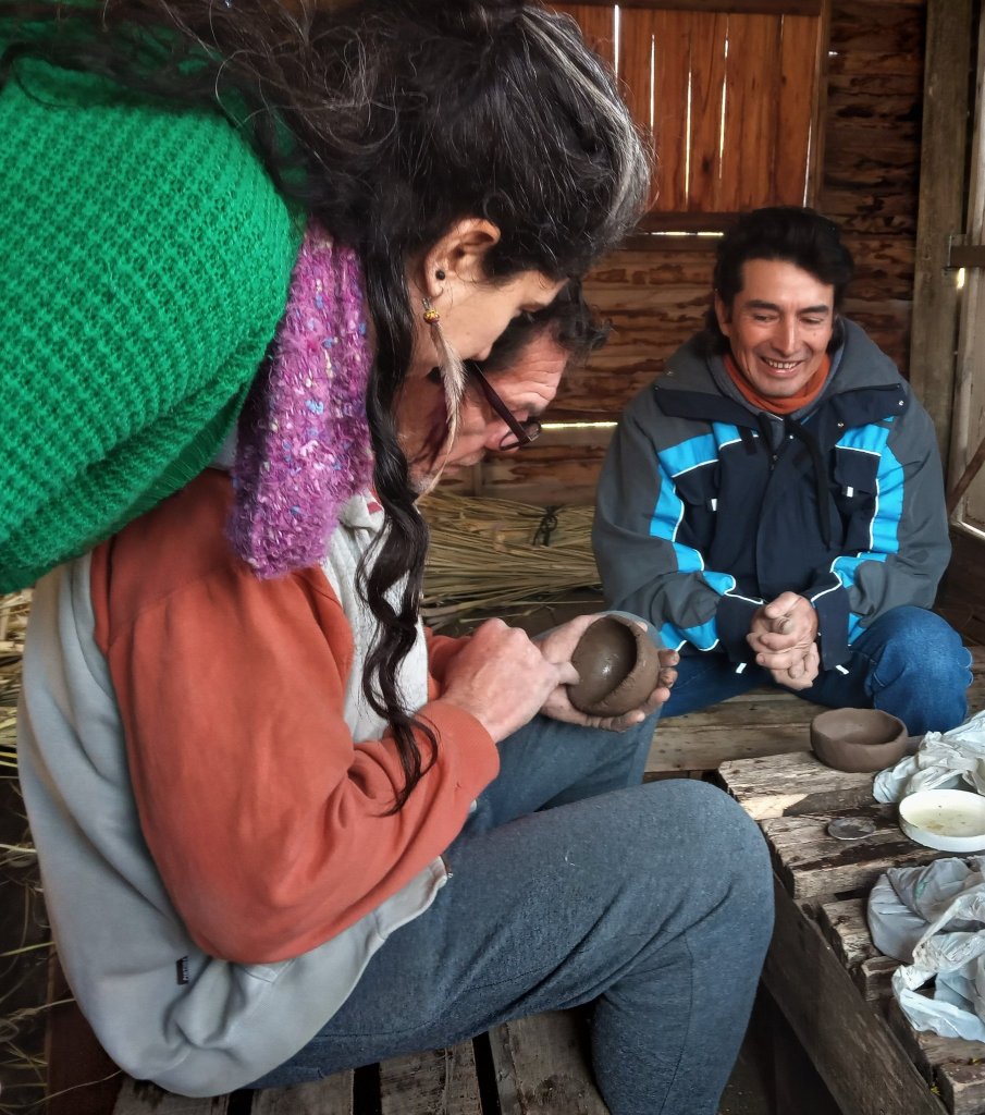 “Nos reencontramos con las distintas pastas hechas con arcilla, ceniza, arena y chamote, todos materiales del entorno. Probamos hacer cuencos un poco más grandes. Las manos de a poco van recordando este oficio”, relató Florencia Borowski del Taller Amaru, quien guía los aprendizajes junto a Julieta Medina del Taller Anatiri.