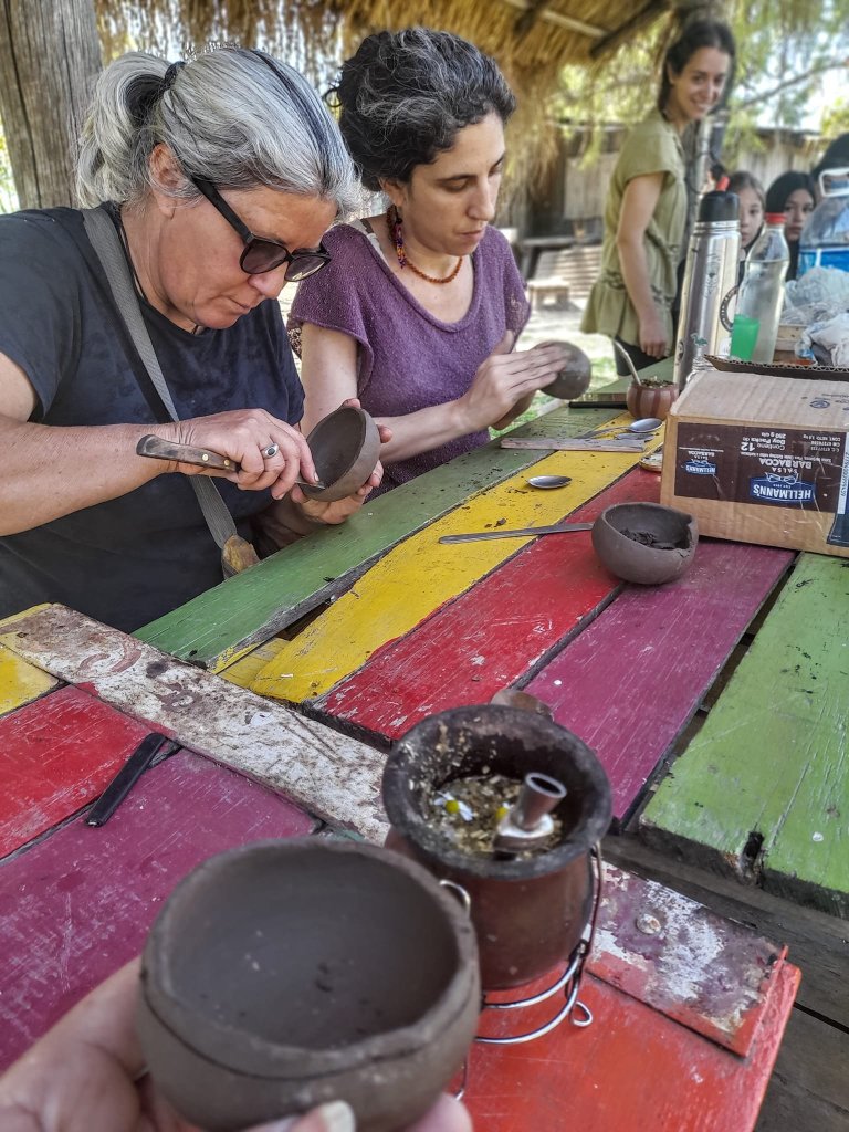 El cuarto encuentro de este proyecto se llevó a cabo el pasado domingo 2 de octubre por la mañana: “Terminamos los primeros cuencos que abrimos, los bruñimos y dejamos secar listos para hornear”, narró Julieta Medina quien guía los aprendizajes junto a Florencia Borowski, de los talleres Anatiri y Amaru respectivamente.