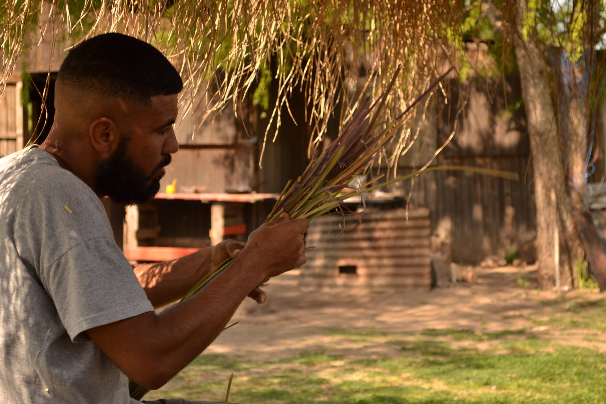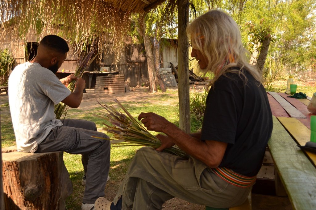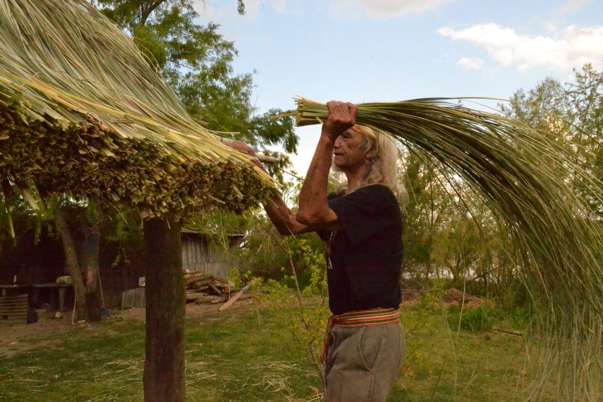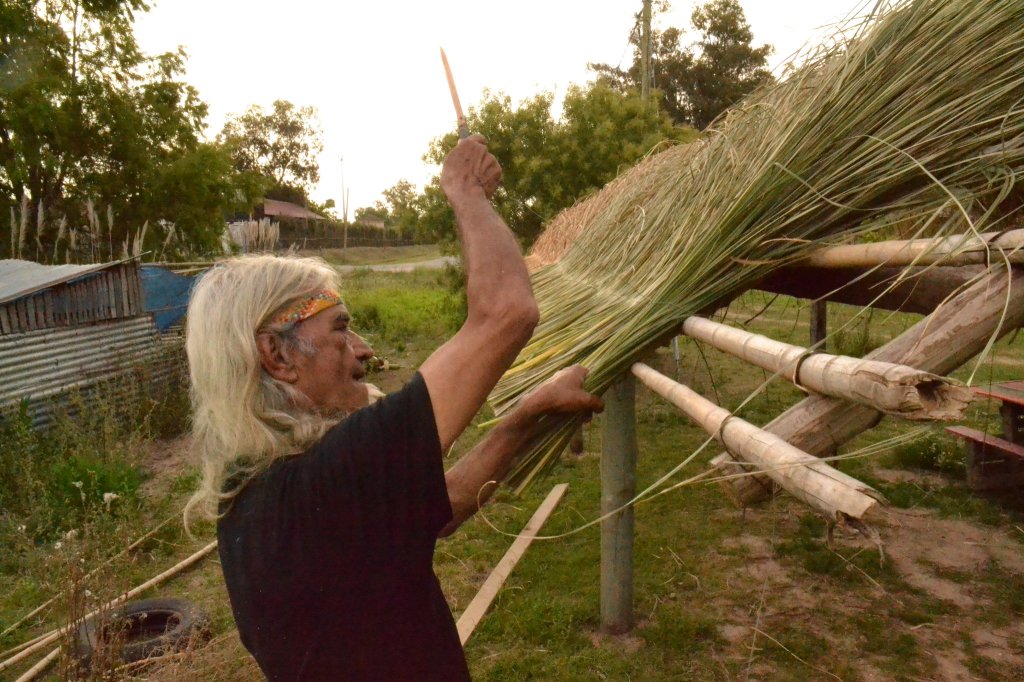 Luego de compartir el almuerzo, las tareas continuaron hasta las 18 horas centradas en la reconstrucción del techo de paja brava (kapi’i ñaro) del quincho, una de las prioridades de los próximos meses.