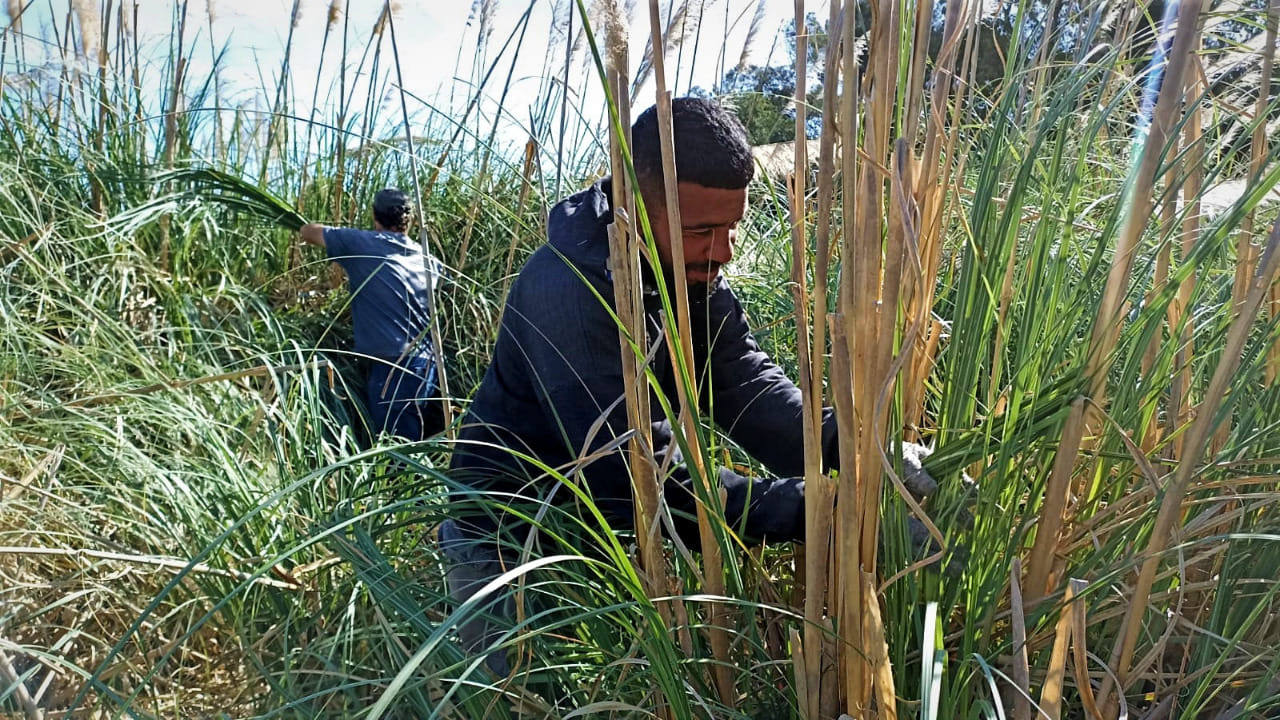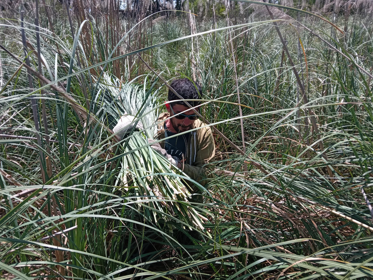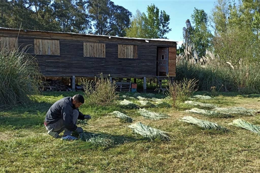Este domingo 23 de octubre, además de la visita guiada después del almuerzo, durante todo el día cortaremos kapi’ ñarõ (paja brava) siguiendo con el trabajo de la última jornada. Luego de dos semanas, el material estará listo para continuar con el tejido del techo del quincho, uno de los objetivos del año.