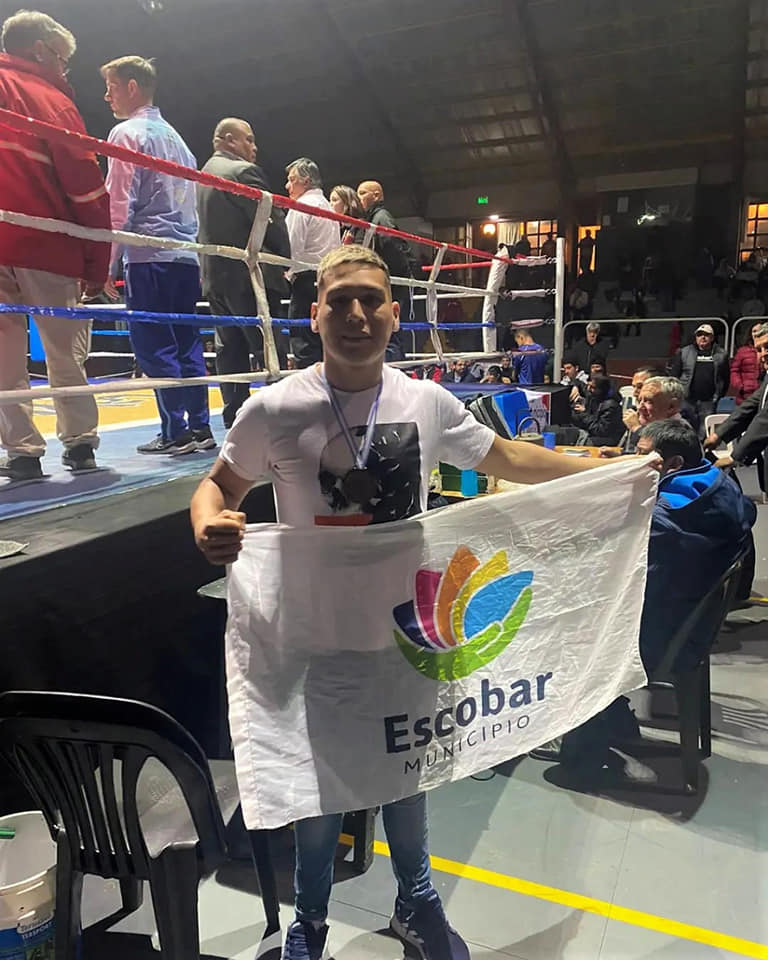 Agradecido, el joven boxeador del Pueblo Qom, además de sacarse fotos con la wiphala como estandarte de los pueblos originarios, también se mostró con un banderín del Municipio de Escobar «por la gran ayuda que me brindaron», se encargó de aclarar más de una vez.