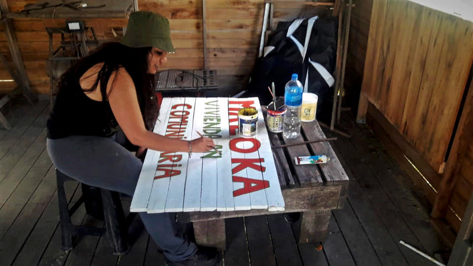 En lo que respecta a los trabajos, avanzamos con la construcción del quincho de paja brava y se hicieron tareas de mantenimiento en la huerta y en el vivero. Luego de compartir el almuerzo, se realizó la visita guiada por el Museo Autónomo de Gestión Indígena y todo el territorio comunitario. Además, unos días antes retomamos las tareas de renovación de la señalética, un eje fundamental aunque muchas veces queda relegado por otras urgencias.