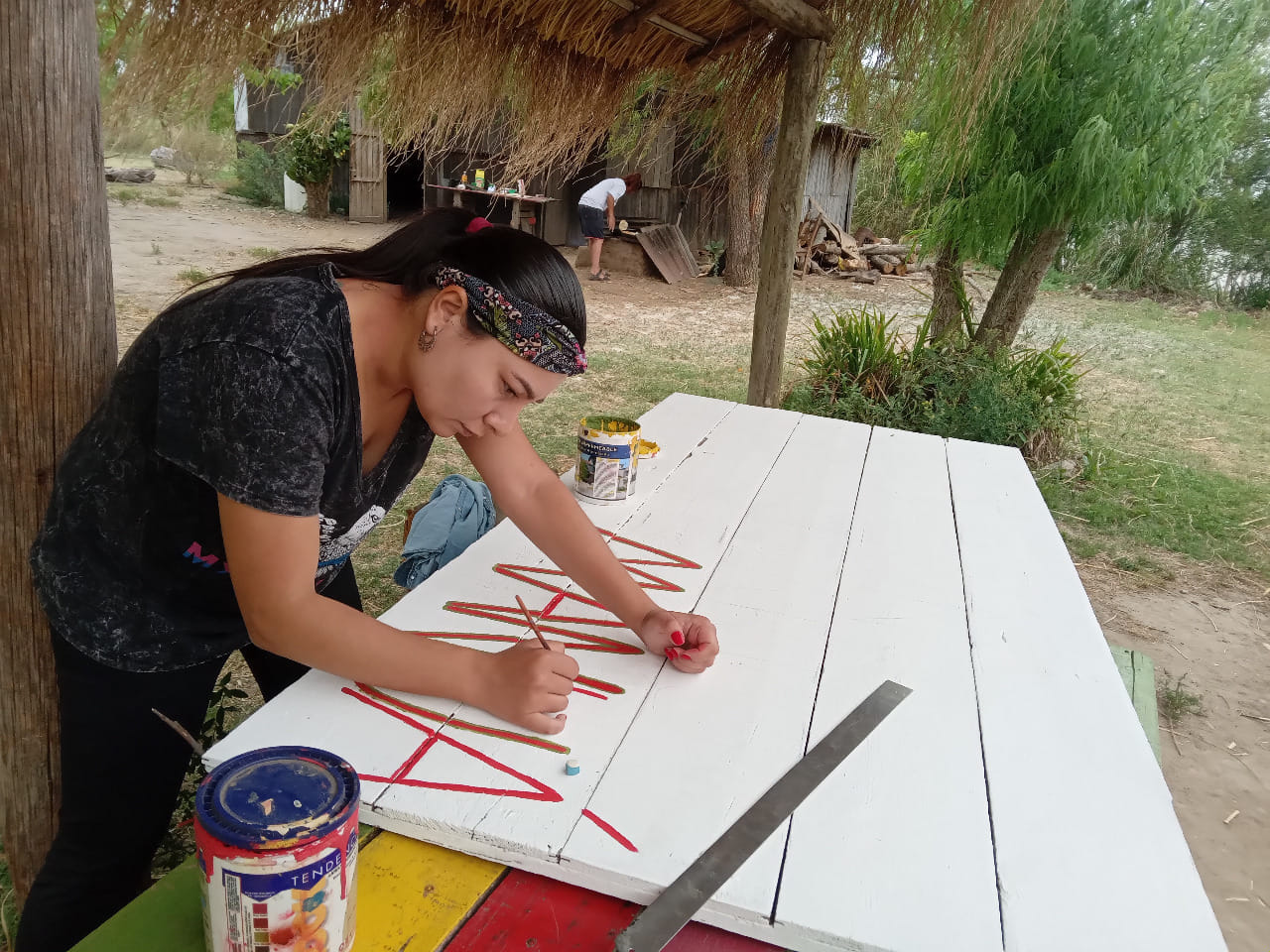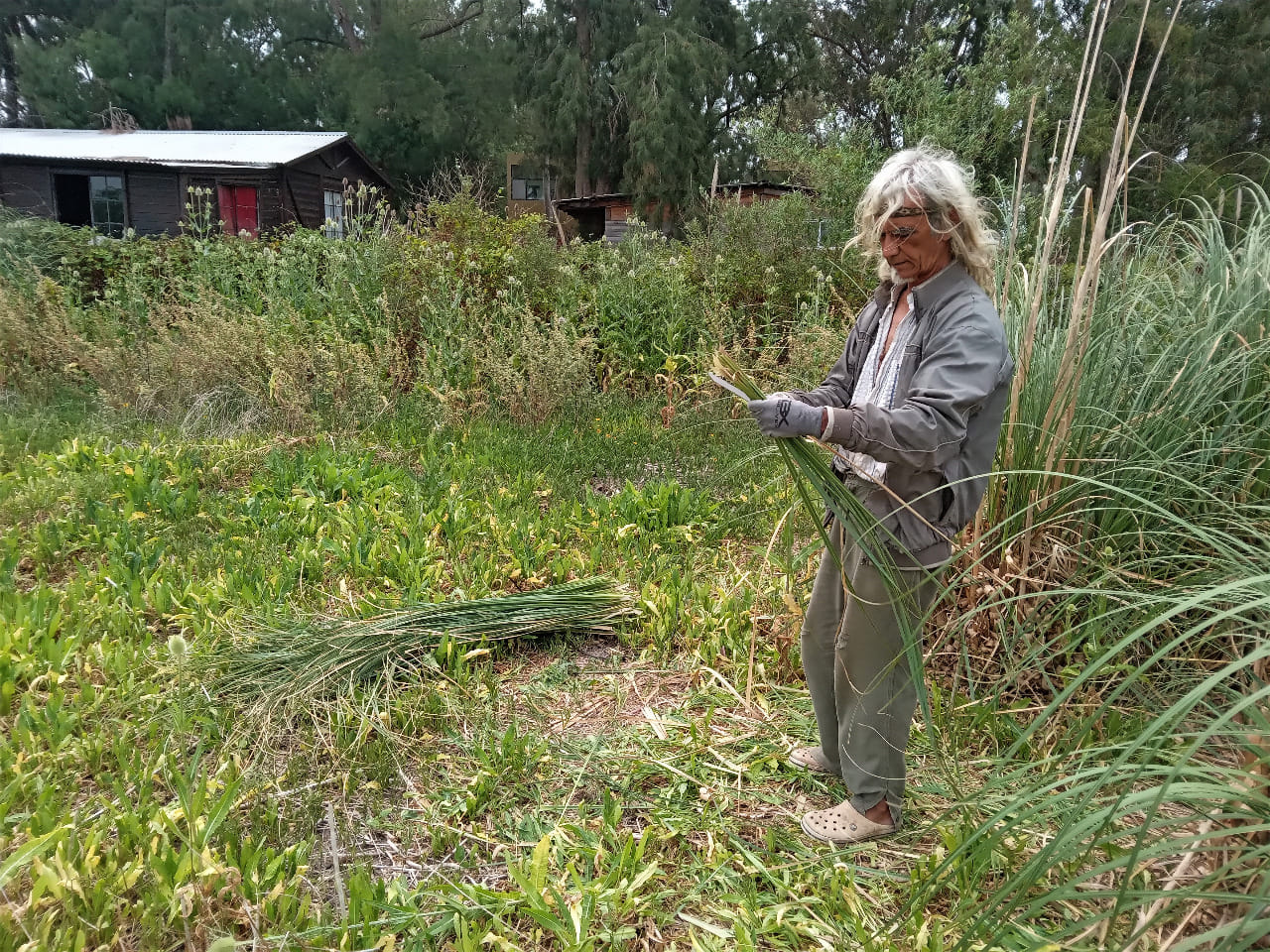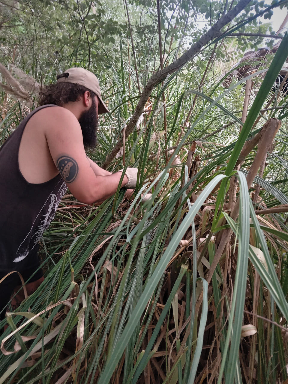 Al estar bajo la luna en cuarto menguante, la prioridad fue cortar paja brava para la reconstrucción del techo del quincho. Además, seguimos con la creación del cartel para el Salón Comunitario Cacique Manuá.