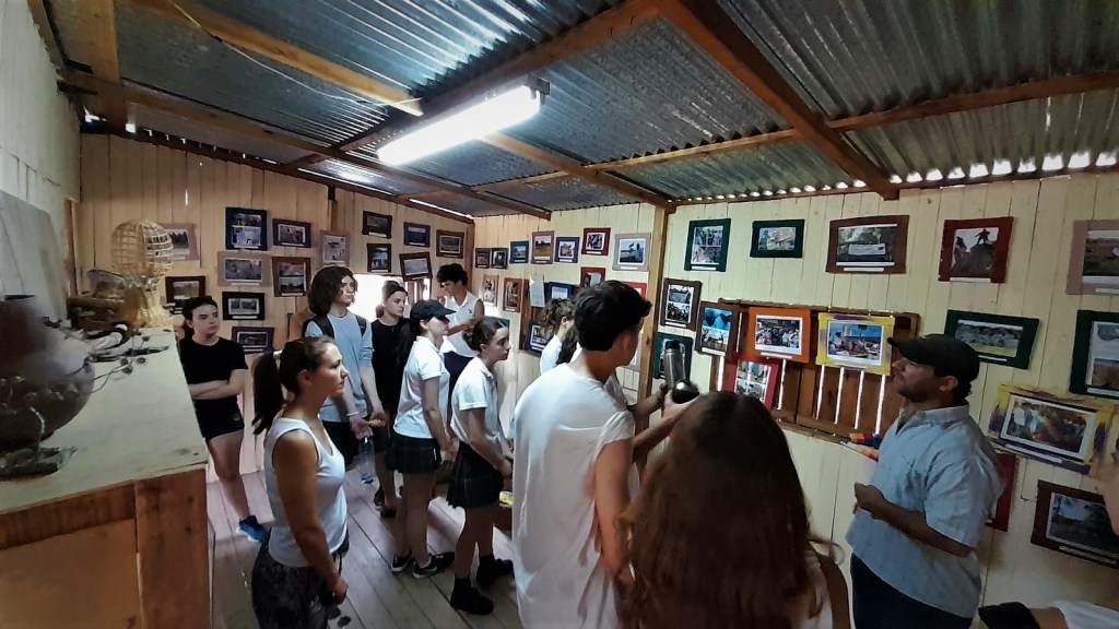Como es habitual, después de una ronda de presentación, se realizó la recorrida por el Museo Autónomo de Gestión Indígena y por las distintas construcciones y espacios significativos del territorio, ubicado en los últimos humedales continentales de la región.