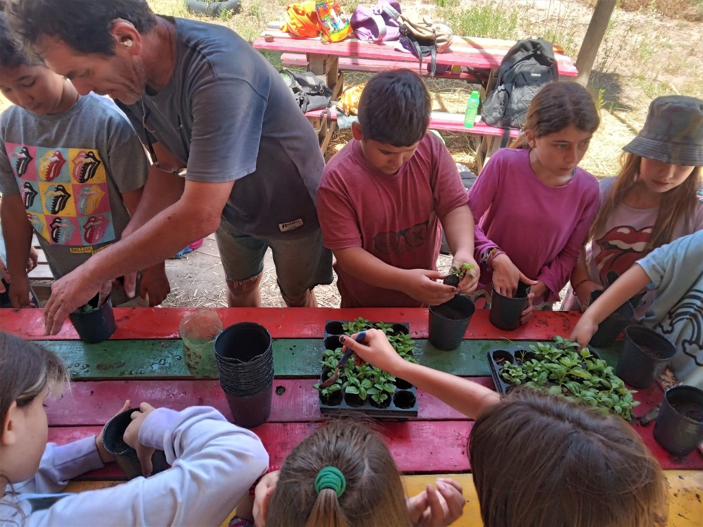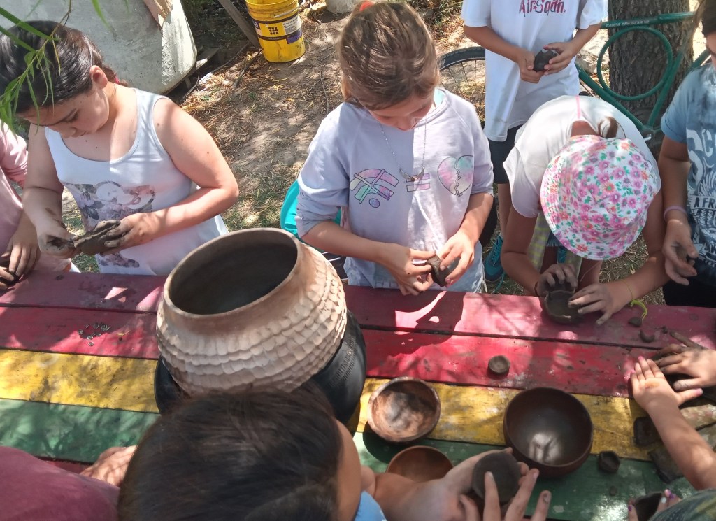 Además de la visita guiada por el territorio comunitario, realizaron dos breves talleres. Uno de cerámica, donde reconocieron la textura de la arcilla del lugar y realizaron algunas figuras. Y otro de huerta, donde la tarea fue el repique de plantines desde la semillera a macetas. En ambos casos, los estudiantes se llevaron a sus casas lo producido.