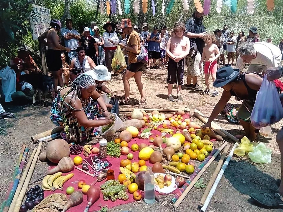Esta comunidad, conformada a partir del hallazgo de restos arqueológicos, sitios sagrados de enterramientos milenarios de los pueblos que habitaron estas tierras originalmente, y que estaban siendo destruidas por el avance de los barrios privados como Nordelta y Villanueva, responsables además de una destrucción ambiental de proporciones, con el relleno de humedales, entre otras.