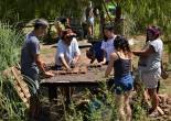 Calor sofocante, trabajos con barro y corte de paja brava en Punta Querandí
