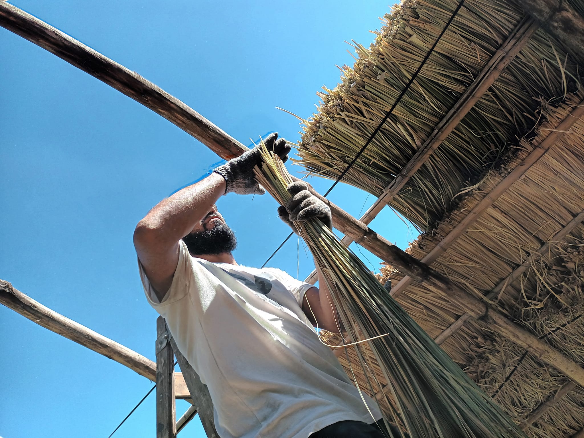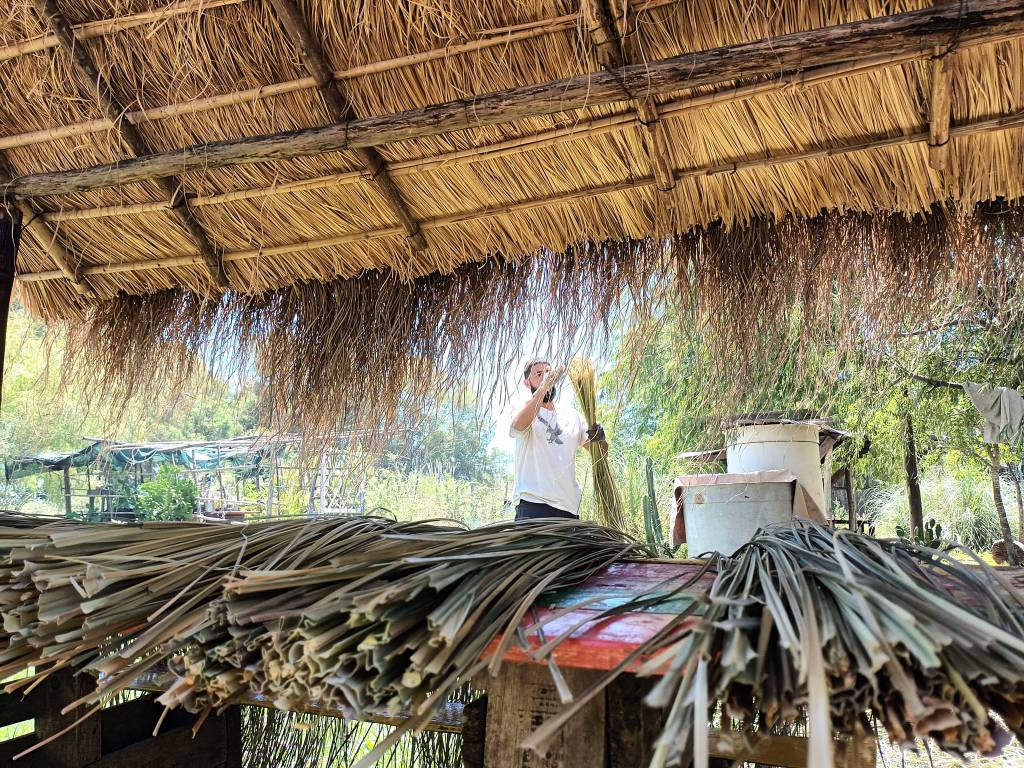 Entre otras tareas habituales como sostener la huerta, las actividades estuvieron centradas en la reconstrucción del quincho de paja brava. Los días de luna en cuarto menguante aprovechamos para cortar este material también conocido como cortadera o kapi’i ñaro (en guaraní) y dos semanas después, el domingo 29 de enero, se utilizó en su totalidad. El próximo corte de paja será el domingo 12 de febrero.