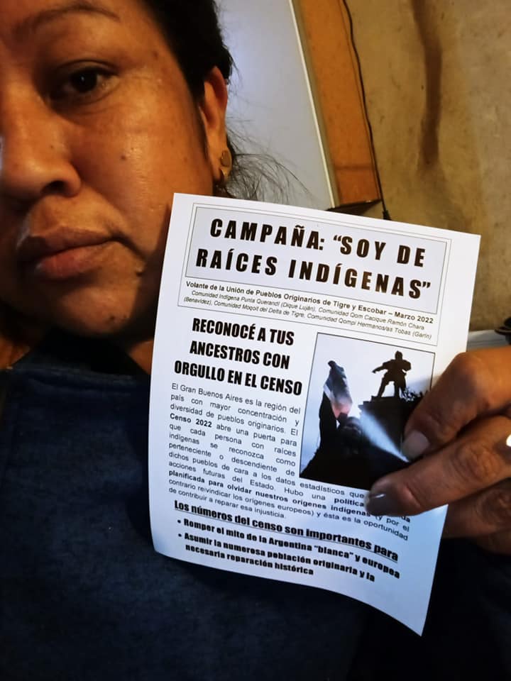 Vecina de la localidad de Rincón y hablante de su idioma materno, Virginia inscribió a sus hijos en el curso de lengua moqoit, financiado por el Municipio de Tigre y con la coordinación del profesor intercultural bilingüe Cristian Santos de El Pastoril. Antes, se sumó a la Campaña “Soy de Raíces Indígenas” de la Unión de Pueblos Originarios de cara al Censo 2022, a través de un posteo sencillo que alcanzó una repercusión nunca antes lograda desde las redes de Punta Querandí. “Reconocé a tus ancestros con orgullo”, era el mensaje.