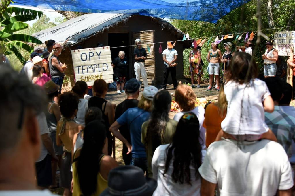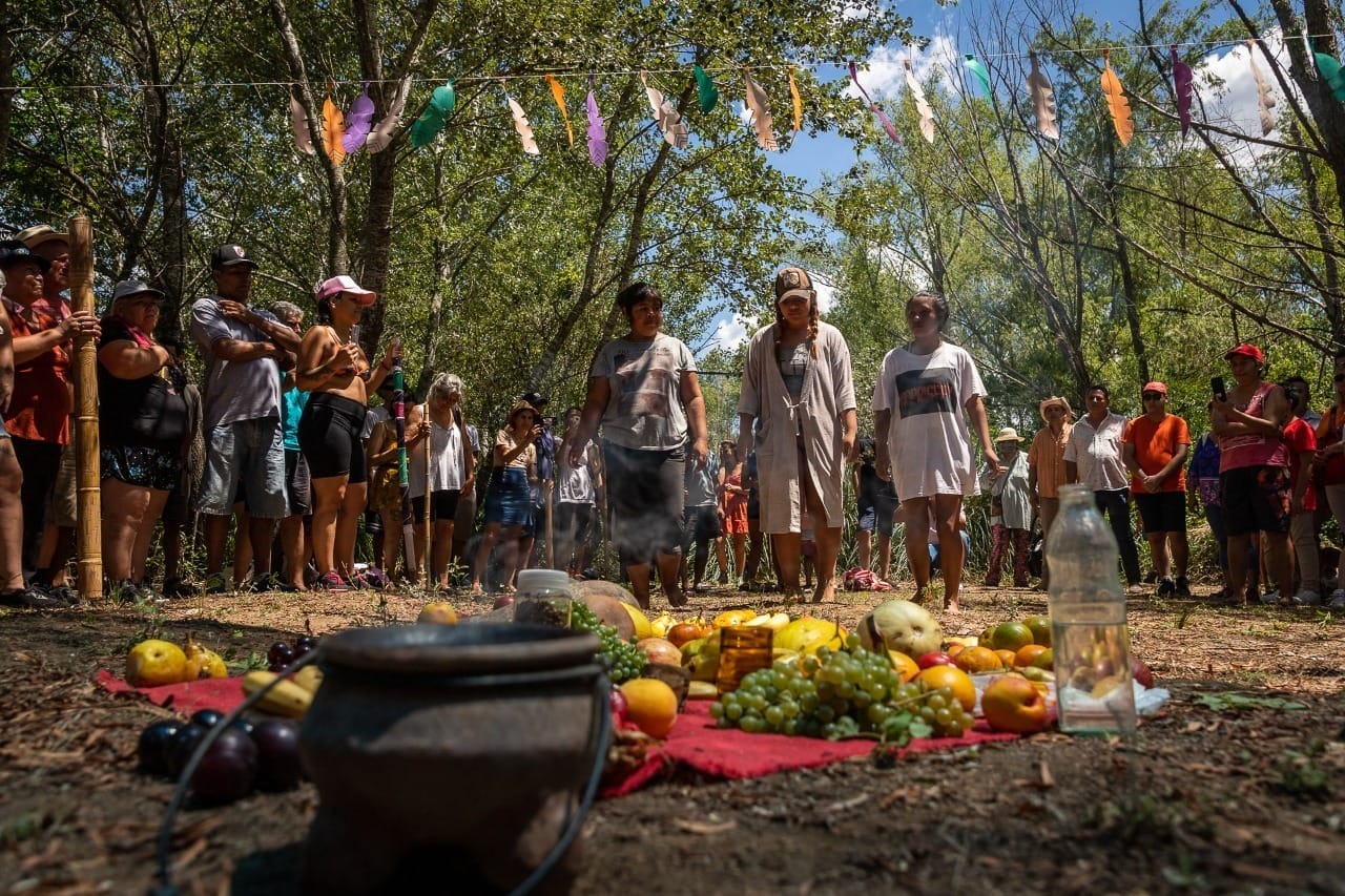 Más de un centenar de personas compartieron la ceremonia de bendición de los frutos maduros en el territorio de la Comunidad Indígena Punta Querandí, un espacio de lucha que logró la protección del sitio sagrado de los pueblos originarios ubicado en el epicentro de los barrios privados responsables de la destrucción de enterratorios ancestrales y de miles de hectáreas de humedales continentales. La celebración tuvo una destacada participación de mujeres mbya, de distintos sectores de la gran Nación Guaraní y de miembros de los Pueblos Qom, Kolla, Quechua, Moqoit y Mapuche. Un acontecimiento donde confluyeron distintas lenguas, cantos y danzas autóctonas, folklóricas y tradicionales: desde el tangará ceremonial al chamamé, chacarera, zamba, tinku, morenada, pim pim y muchas más.