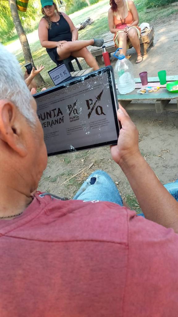A la hora de la merienda, Nontué Sans, Franco Obispo y Maru Betania compartieron sus propuestas para mejorar el logo de Punta Querandí y el recorrido del Museo Autónomo de Gestión Indígena, ideas en las que estuvieron trabajando en el último tiempo.
