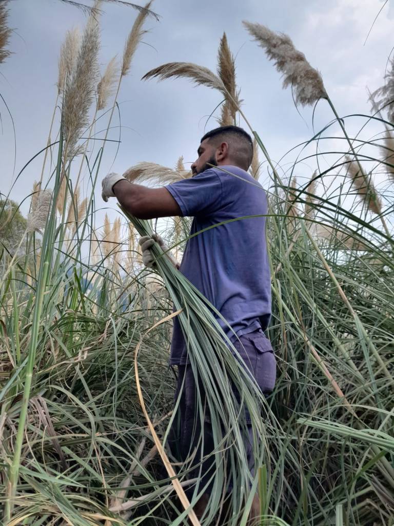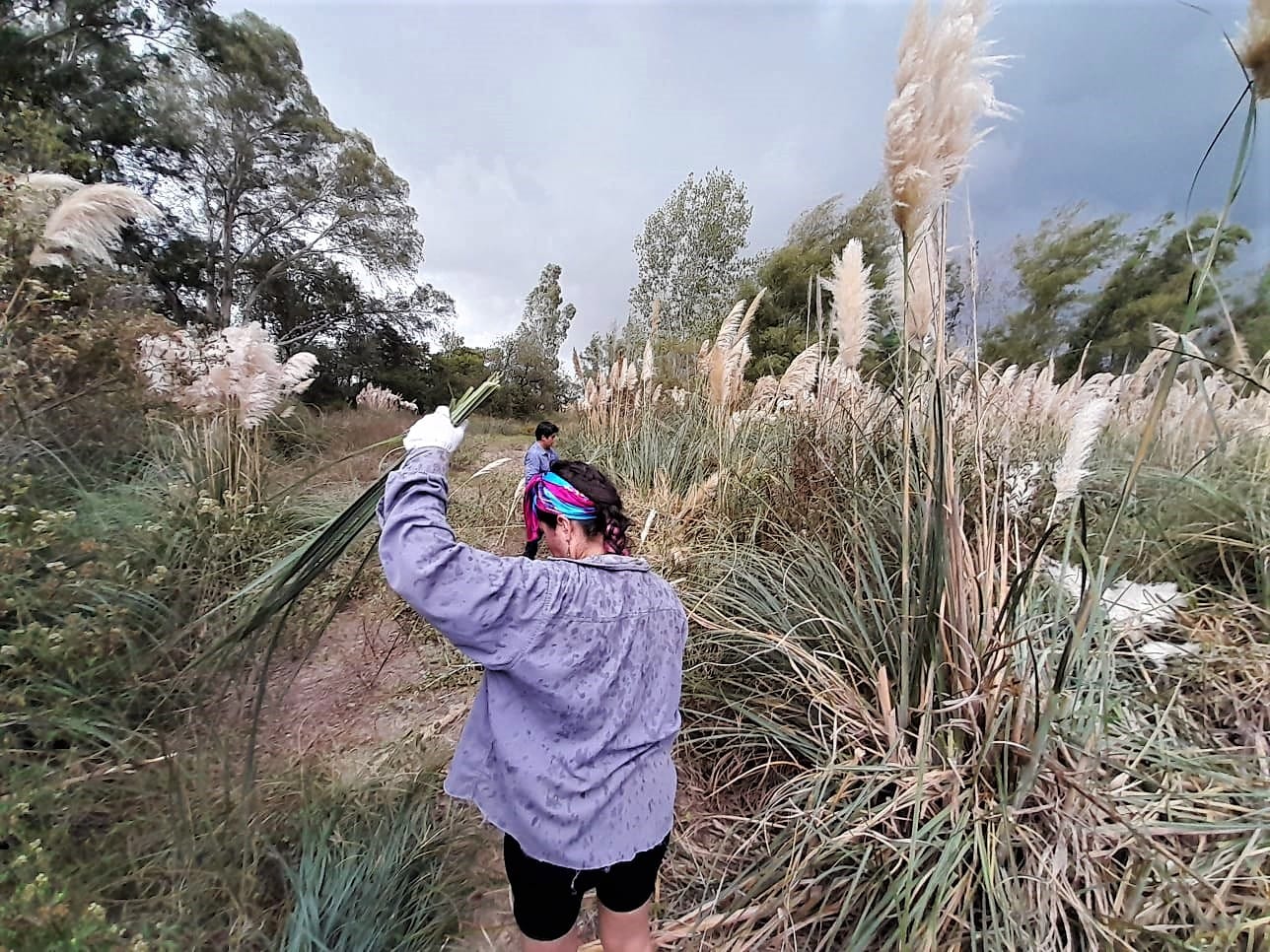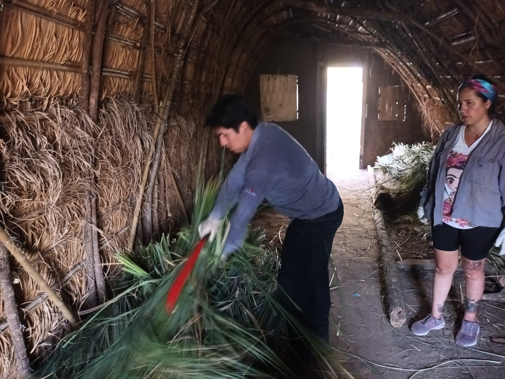 El domingo 19 de marzo, con la luna en cuarto menguante, aprovechamos esta fecha propicia para cortar paja brava (kapi’i ñaro) para el techo del quincho. Otra tarea prevista era la decoración artística del horno, pero tuvo que postergarse por razones climáticas.