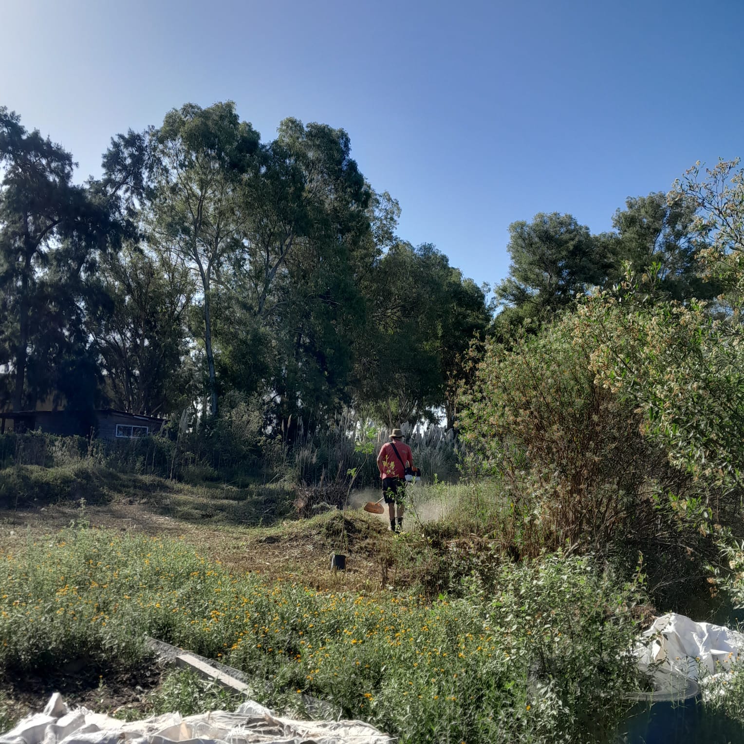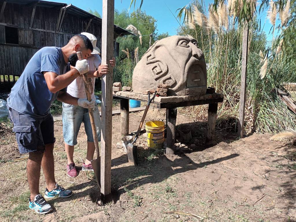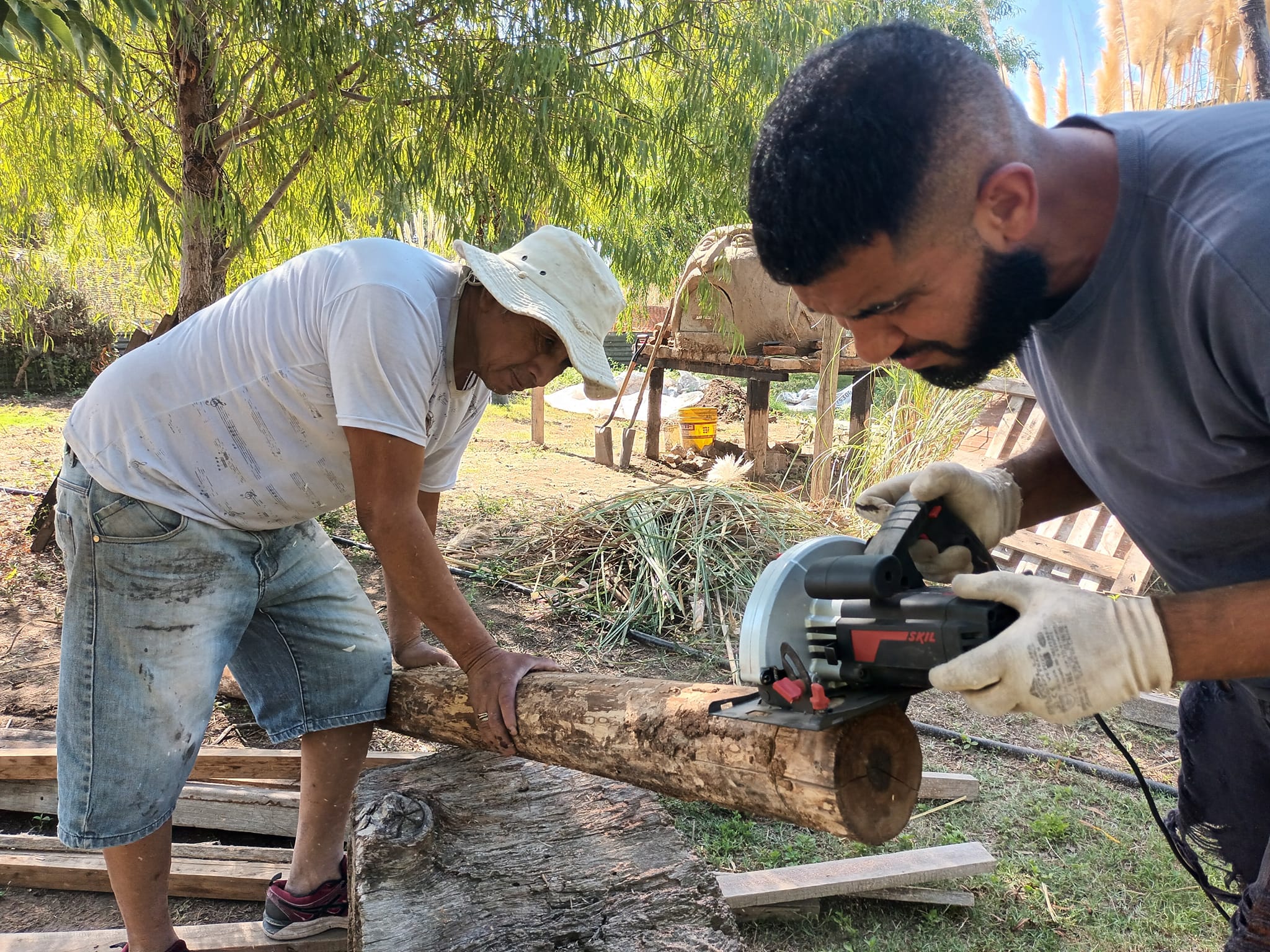 Mientras que el siguiente domingo 26 de marzo, el principal objetivo fue la construcción del techo del horno de barro, pero también se hicieron tareas de limpieza y preparación de la huerta y se cortó el pasto en el sector destinado a frutales.