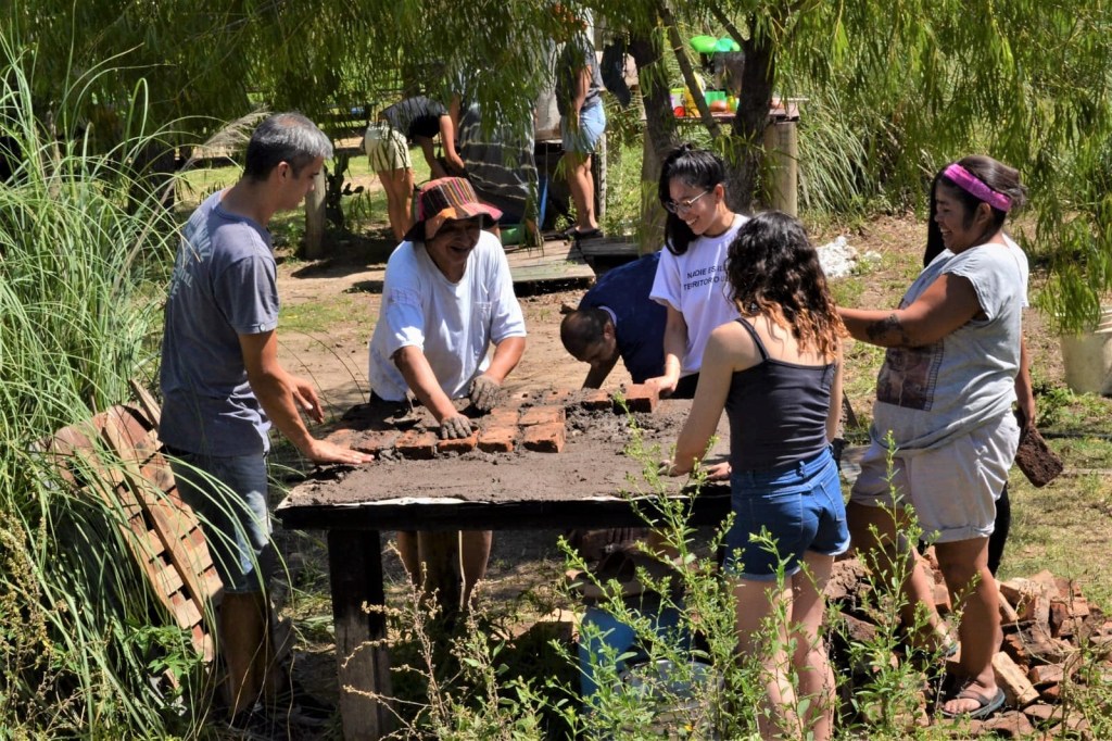 Este proyecto coordinado por Santiago Chara y la docente de arte Marisol Martínez inició a fines de enero y durante todo el proceso participaron muchísimas personas, convirtiéndose en una las actividades prioritarias de los últimos meses. Después de desarmar el horno de barro construido en 2017 y hacer la base de madera, llegó el momento de trabajar con el barro, los ladrillos y una mezcla de sal y vidrio picado de las botellas recicladas de la basura flotante de río. En jornadas sucesivas se levantó la estructura, se le dio la figura escultórica, se construyó el techo y, por último, se pintó con pigmentos naturales.