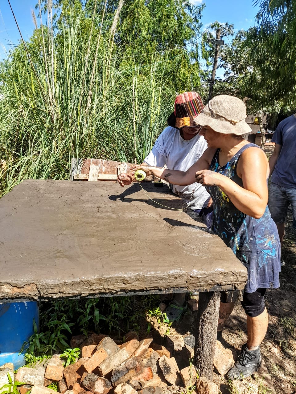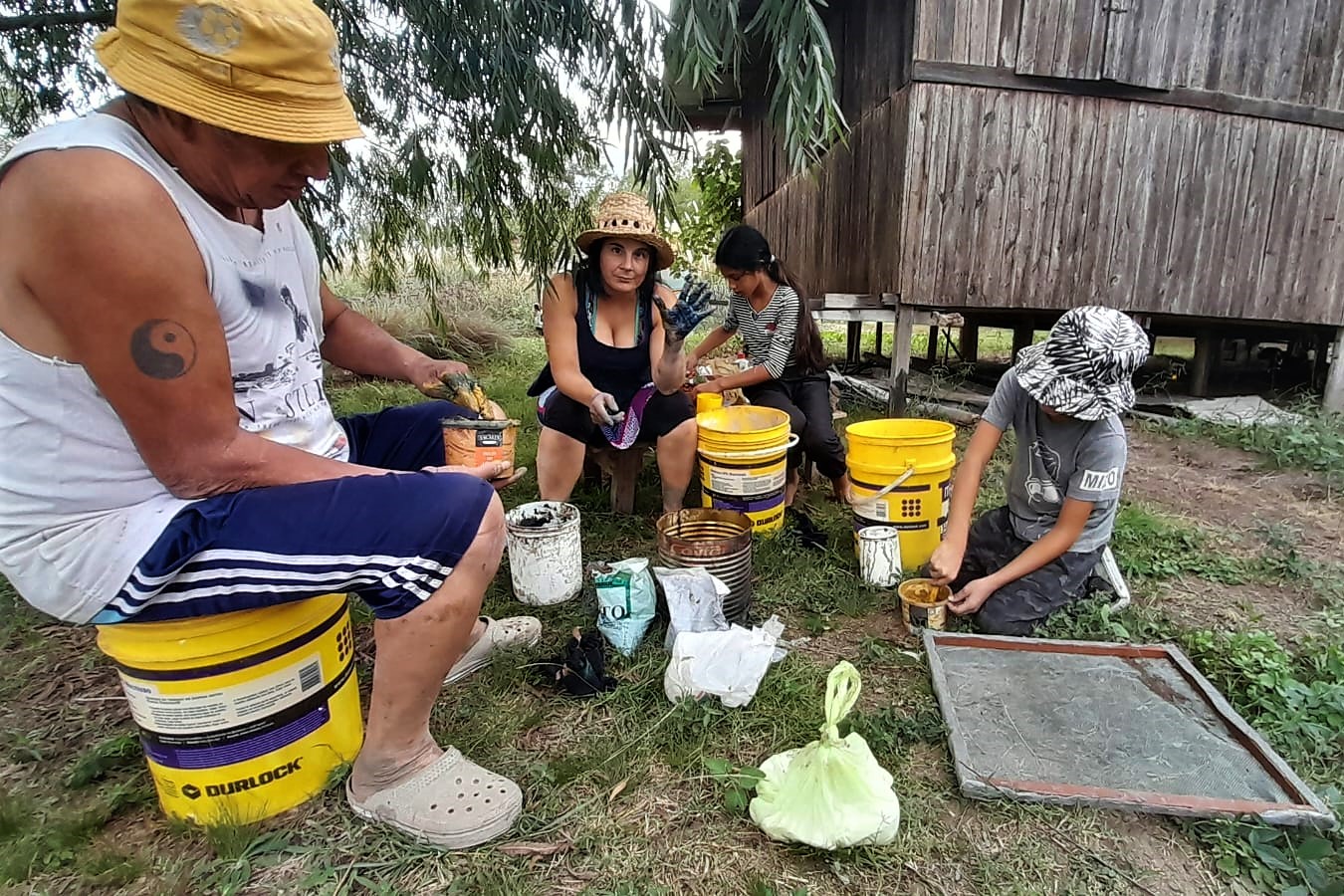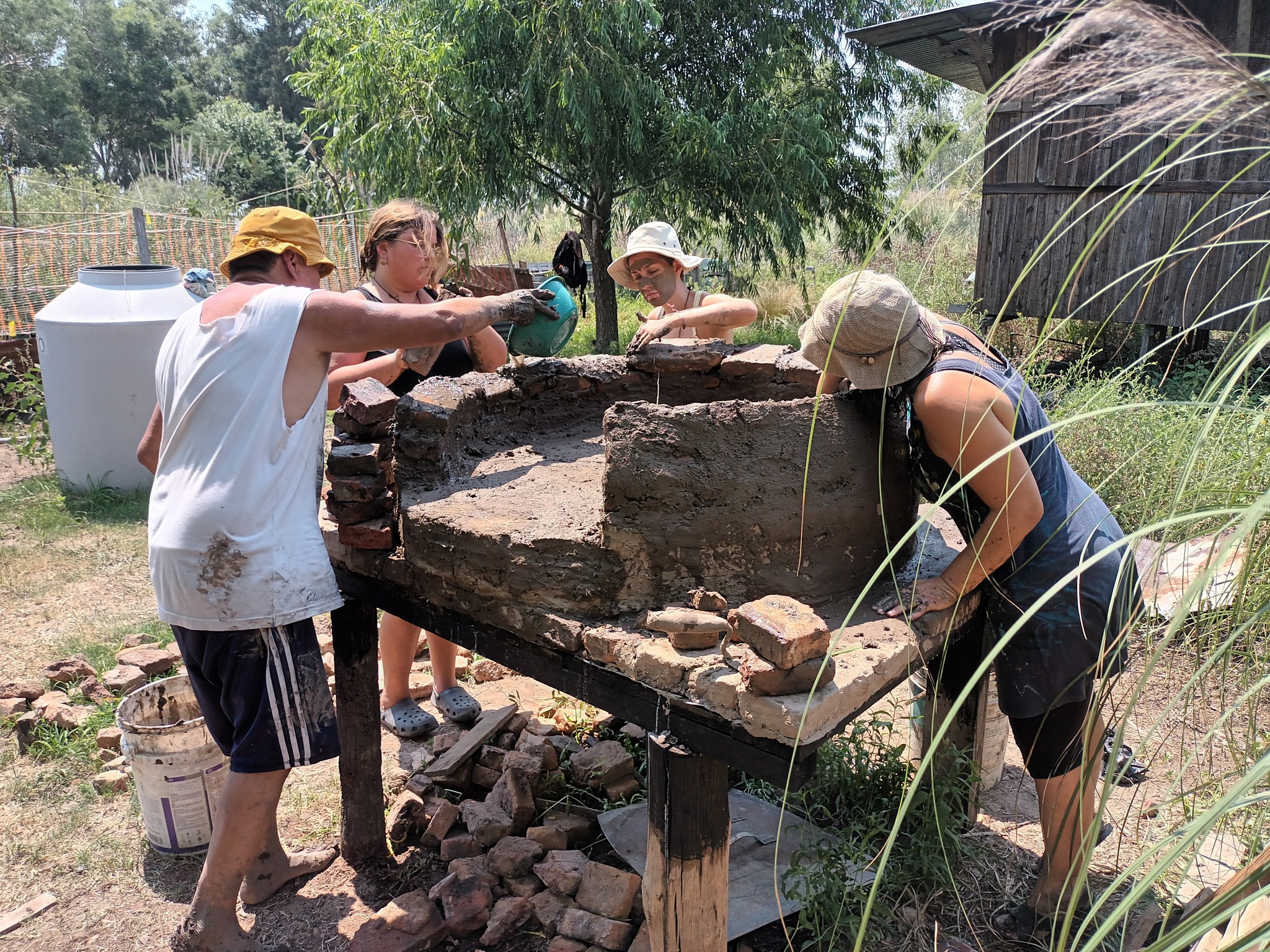 Este proyecto coordinado por Santiago Chara y la docente de arte Marisol Martínez inició a fines de enero y durante todo el proceso participaron muchísimas personas, convirtiéndose en una las actividades prioritarias de los últimos meses. Después de desarmar el horno de barro construido en 2017 y hacer la base de madera, llegó el momento de trabajar con el barro, los ladrillos y una mezcla de sal y vidrio picado de las botellas recicladas de la basura flotante de río. En jornadas sucesivas se levantó la estructura, se le dio la figura escultórica, se construyó el techo y, por último, se pintó con pigmentos naturales.