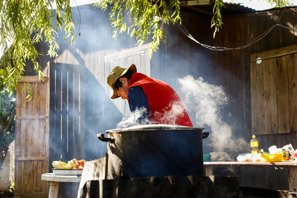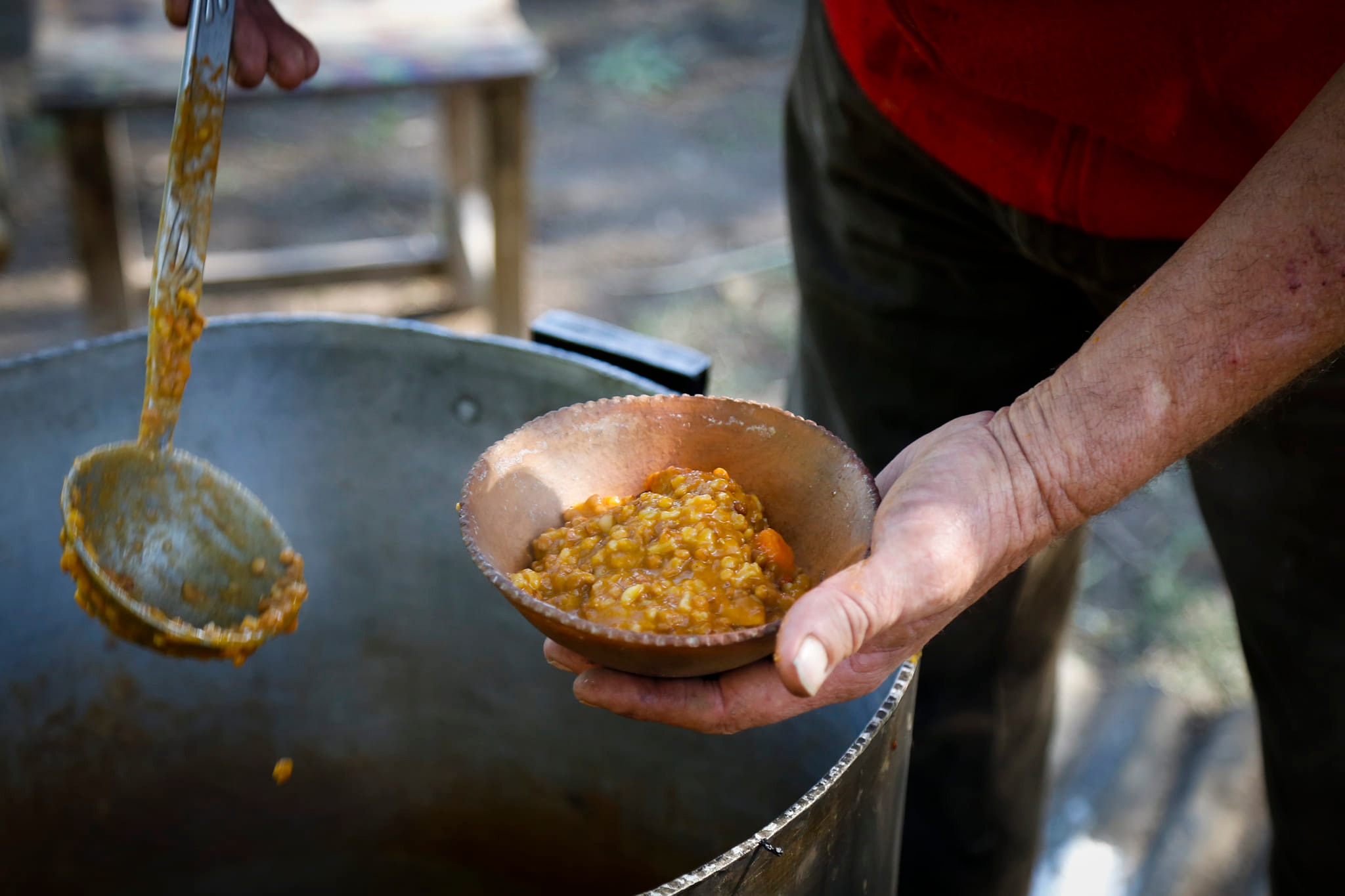 Mientras las personas esperaban que el horno alcance la temperatura adecuada, se compartió un riquísimo almuerzo elaborado en el fogón y comenzó una tarde donde alternaron las canciones de Clara Luna, las reflexiones de quienes tomaban la palabra y la degustación de la primera producción de pan casero y el chipá característico de la cultura gastronómica guaraní.