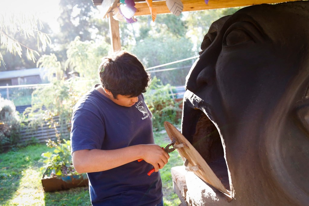 Cumplido este paso, se procedió a encender el horno de barro con la participación de todos y todas, quienes fueron agregando la leña seleccionada durante la mañana.