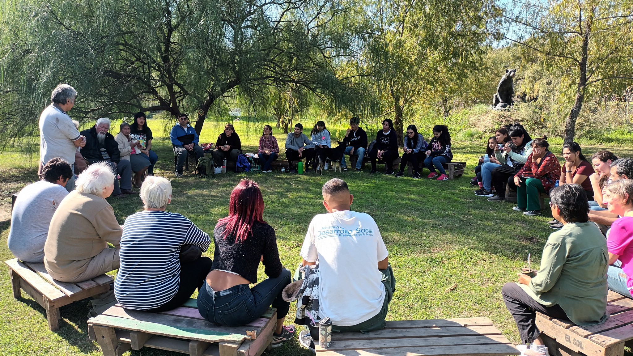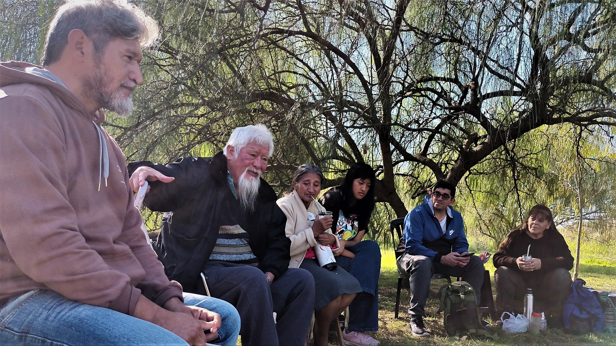 Luego de algunos preparativos y una vez que llegaron las distintas familias y se dispusieron en ronda, el encuentro comenzó con unas palabras de Santiago Chara, del Consejo de Ancianos de Punta Querandí y autoridad de la Comunidad Qom “Cacique Ramón Chara” de Benavidez, uno de los voceros de la Unión de Pueblos Originarios de Tigre y Escobar.