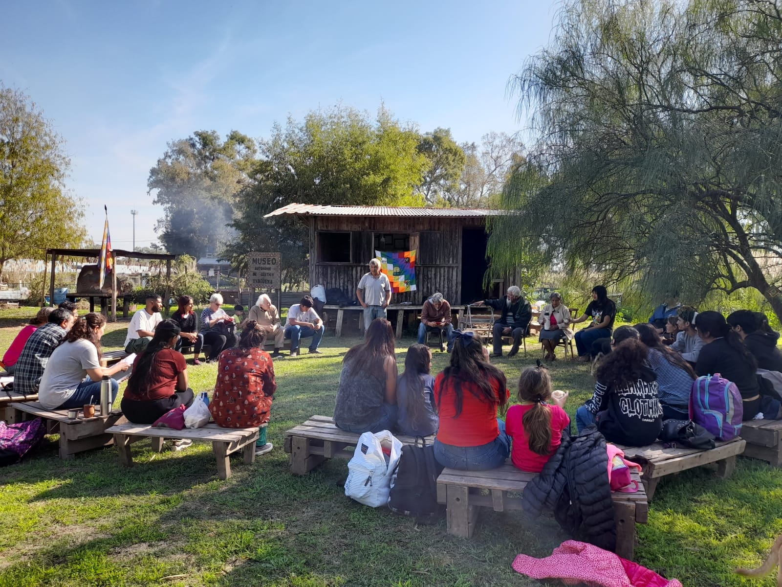 Luego de una pausa para compartir un guiso elaborado en el fogón, se realizó una recorrida por el territorio comunitario y en especial por el Museo Autónomo de Gestión Indígena, donde se narra la lucha de Punta Querandí pero también se visualiza la existencia de las distintas comunidades que integran la Unión de Pueblos Originarios de Tigre y Escobar.