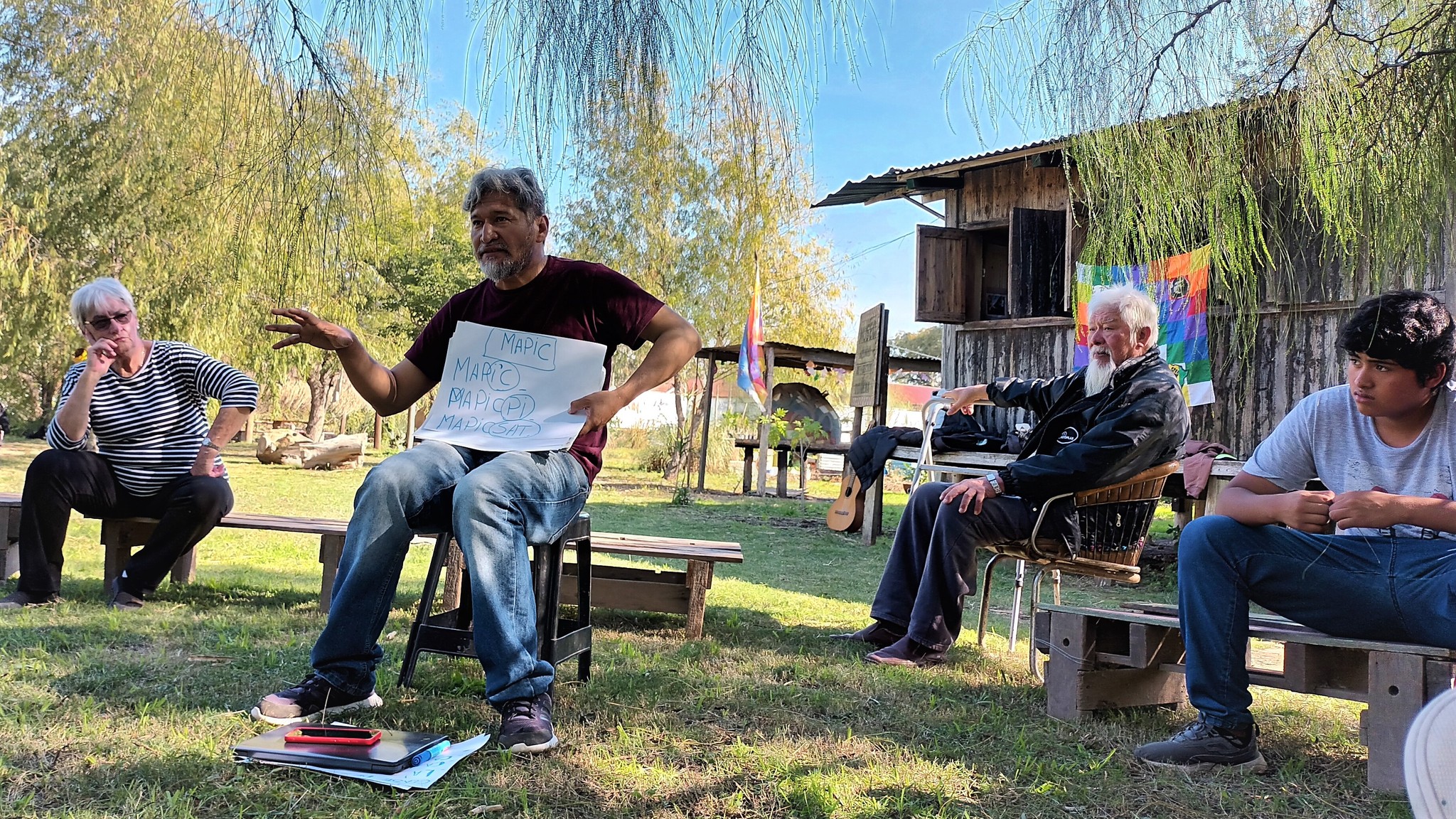 “Me saco el sombrero con el profesor que vino de Chaco: me quedó la imagen de él sentado y todos alrededor debajo del árbol escuchándolo, sus palabras, su silencio”, agregó Roberto. Además, destacó el vínculo entre los estudiantes, quienes hasta ahora sólo habían compartido las clases virtuales: “Cuando nos vimos parecía que nos conociéramos hace tiempo, muy buen sentido de la comunidad con los compas del curso”.