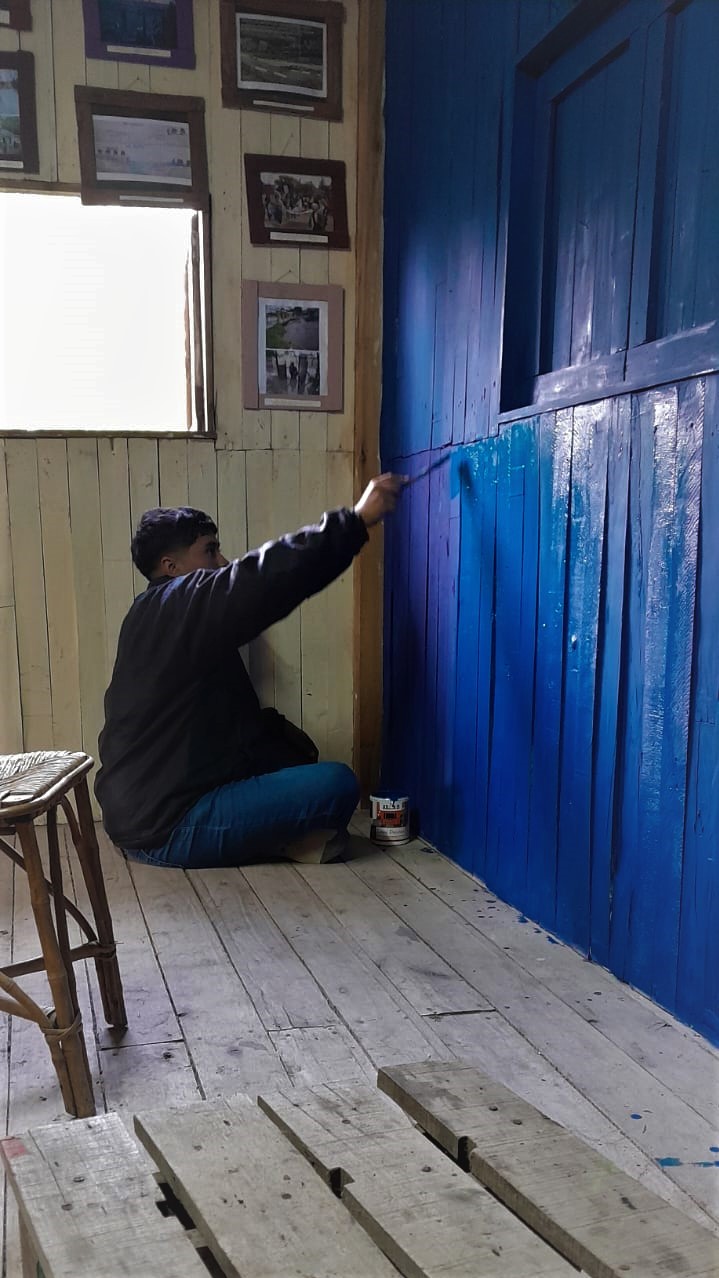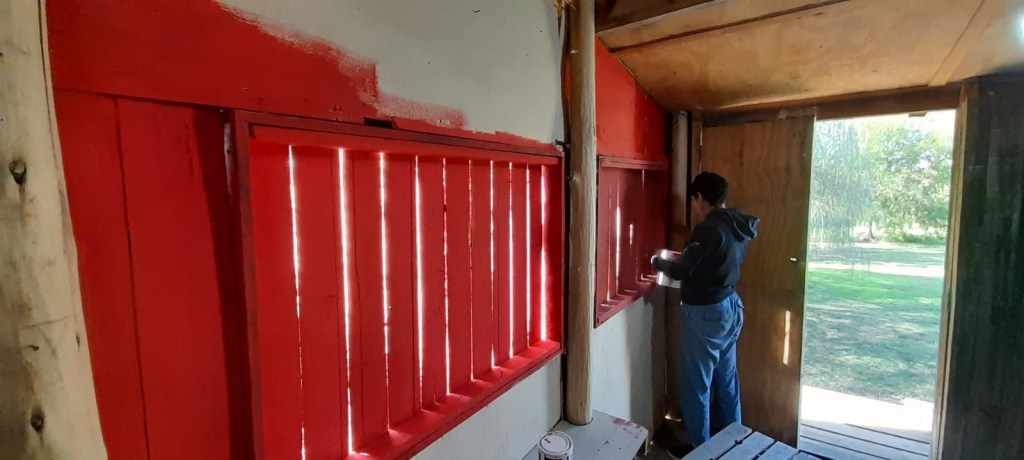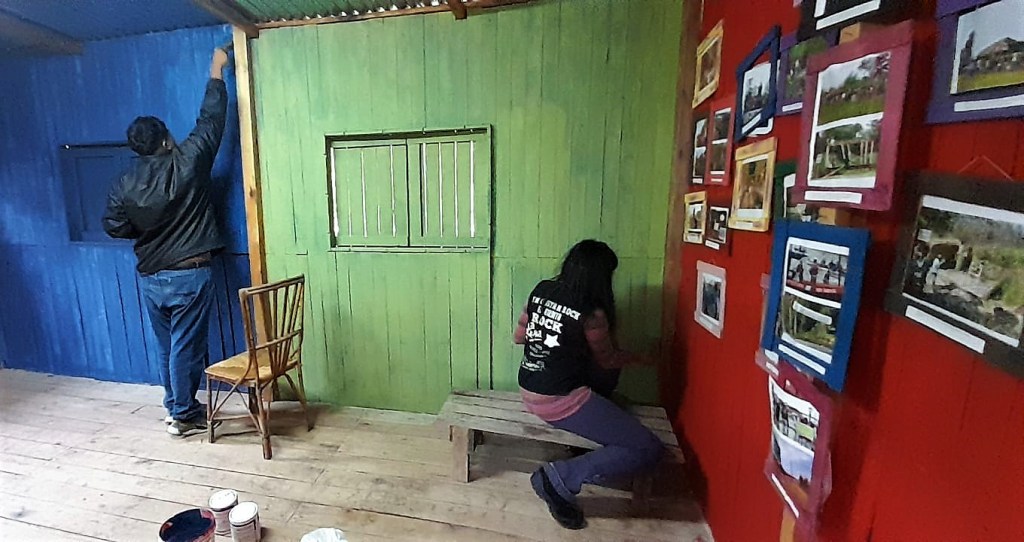 El domingo 21 de mayo, en una jornada marcada por las lloviznas y el clima inestable, se reparó el piso de uno de los baños y se siguió con el trabajo de pintar las paredes internas del Museo Autónomo de Gestión Indígena como parte de una serie de mejoras encaradas en este importante espacio educativo, el cual ya comenzó a recibir visitas de establecimientos escolares.