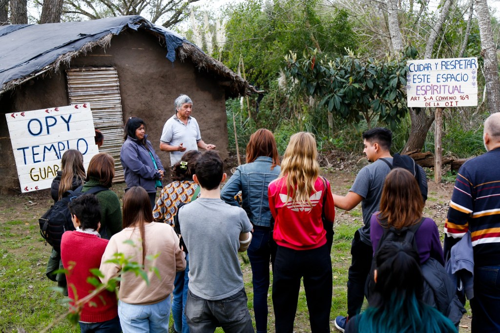 Después de compartir el almuerzo, se hizo una recorrida guiada por el Museo Autónomo de Gestión Indígena y otros puntos significativos del territorio, como los espacios ceremoniales de la Apacheta de la cultura andina y el Opy del Pueblo Mbya Guaraní.