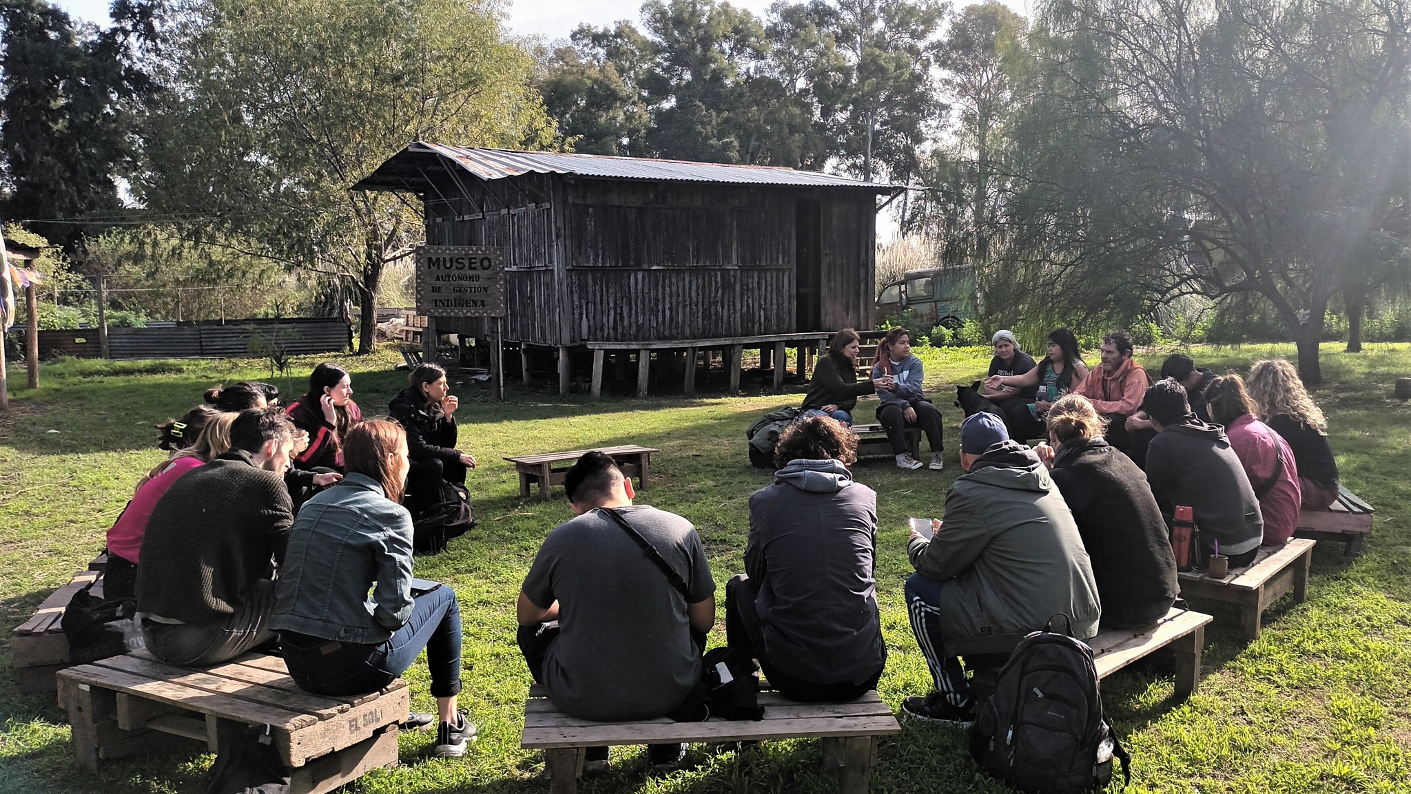 La docente Inés Petz contó que la visita fue organizada en el marco del Seminario de Investigación «Acciones colectivas, protestas y movimientos sociales» y explicó que «venimos trabajando en la cursada sobre la experiencia de distintos movimientos sociales rurales de nuestro país, por eso quisimos acercarnos a conocer el territorio de Punta Querandí y su lucha y resistencia en estos casi 20 años de trayectoria».