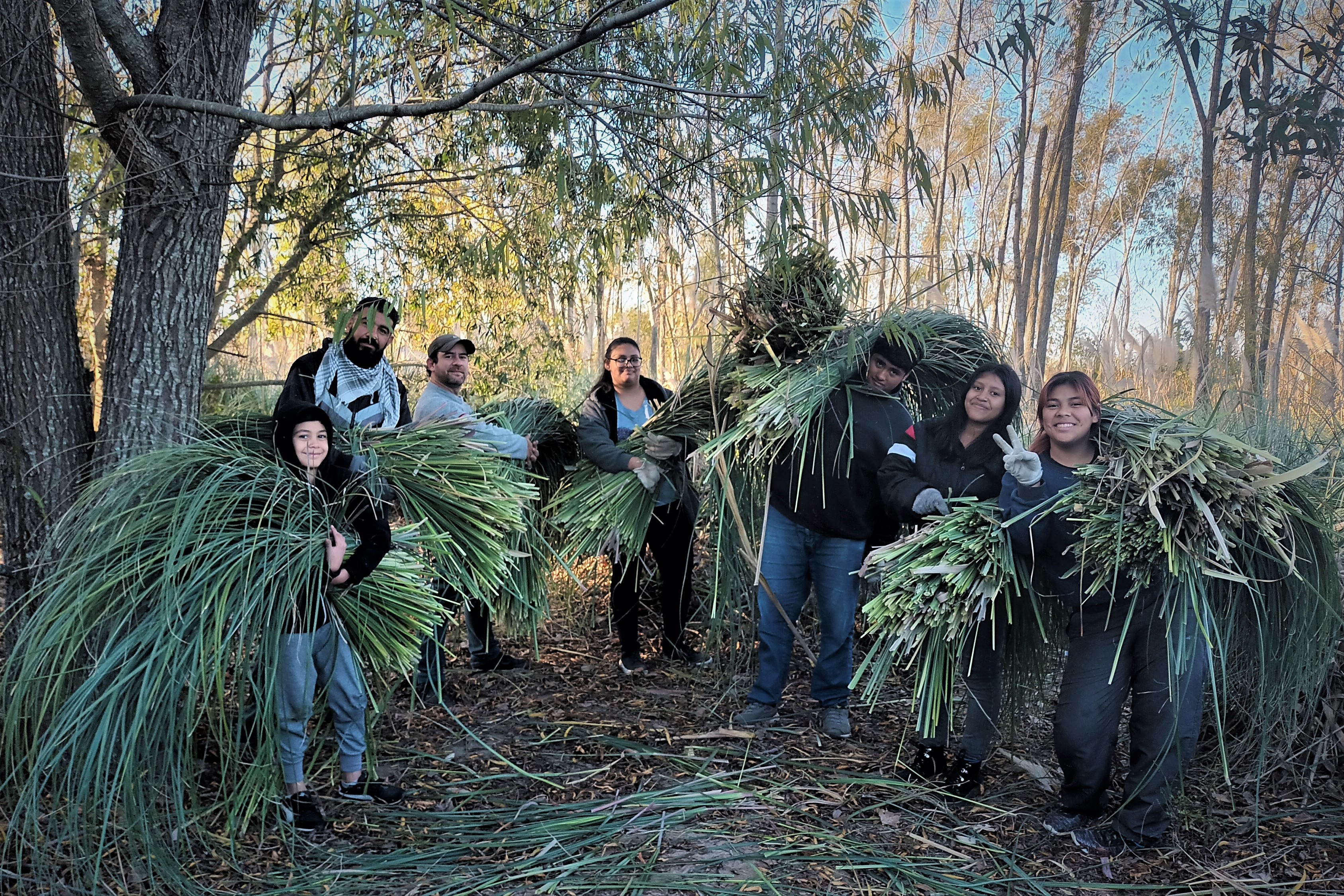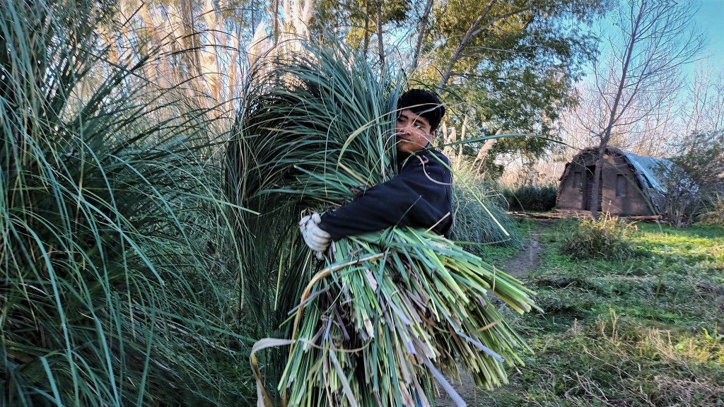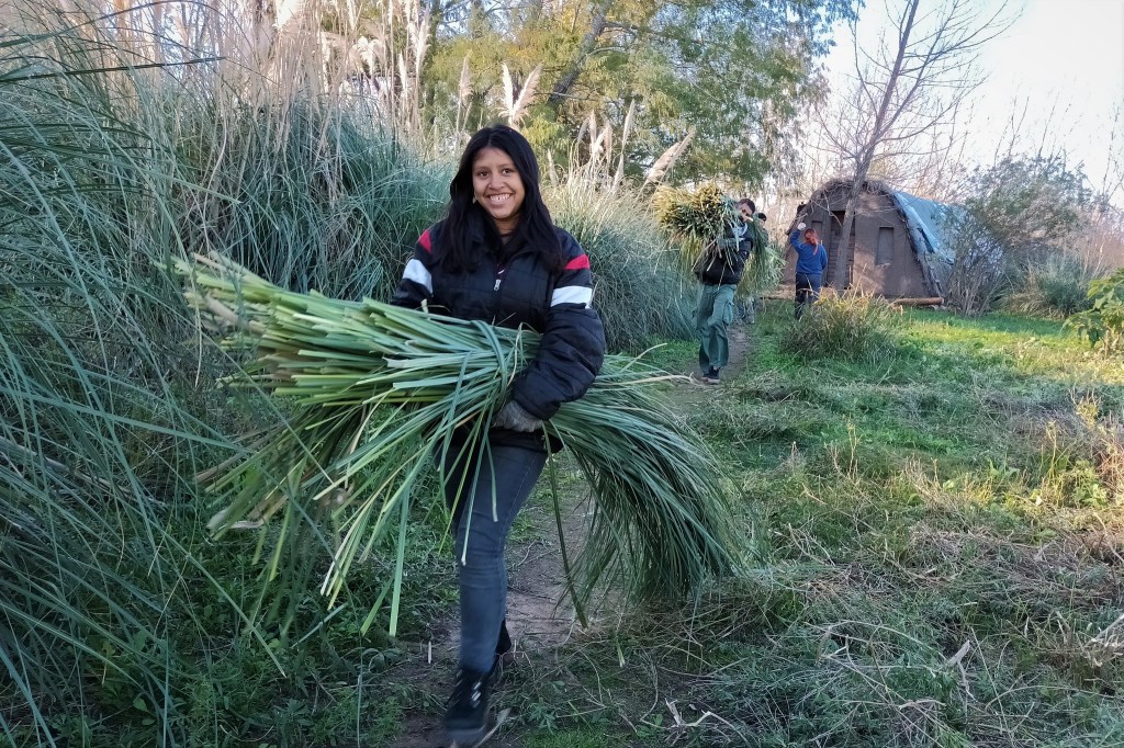 Lo valioso de esta construcción es que participan muchas personas, de distintas edades y géneros, algunas con experiencia de haber realizado estas tareas en sus territorios de origen y al hacerlo en Punta Querandí se sienten como en su casa; otras lo hacen por primera vez.