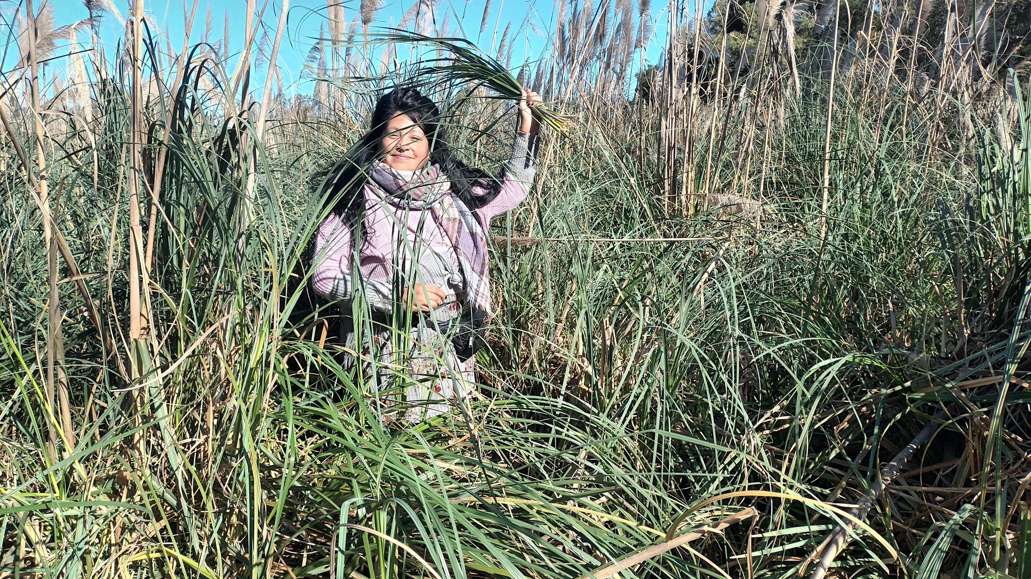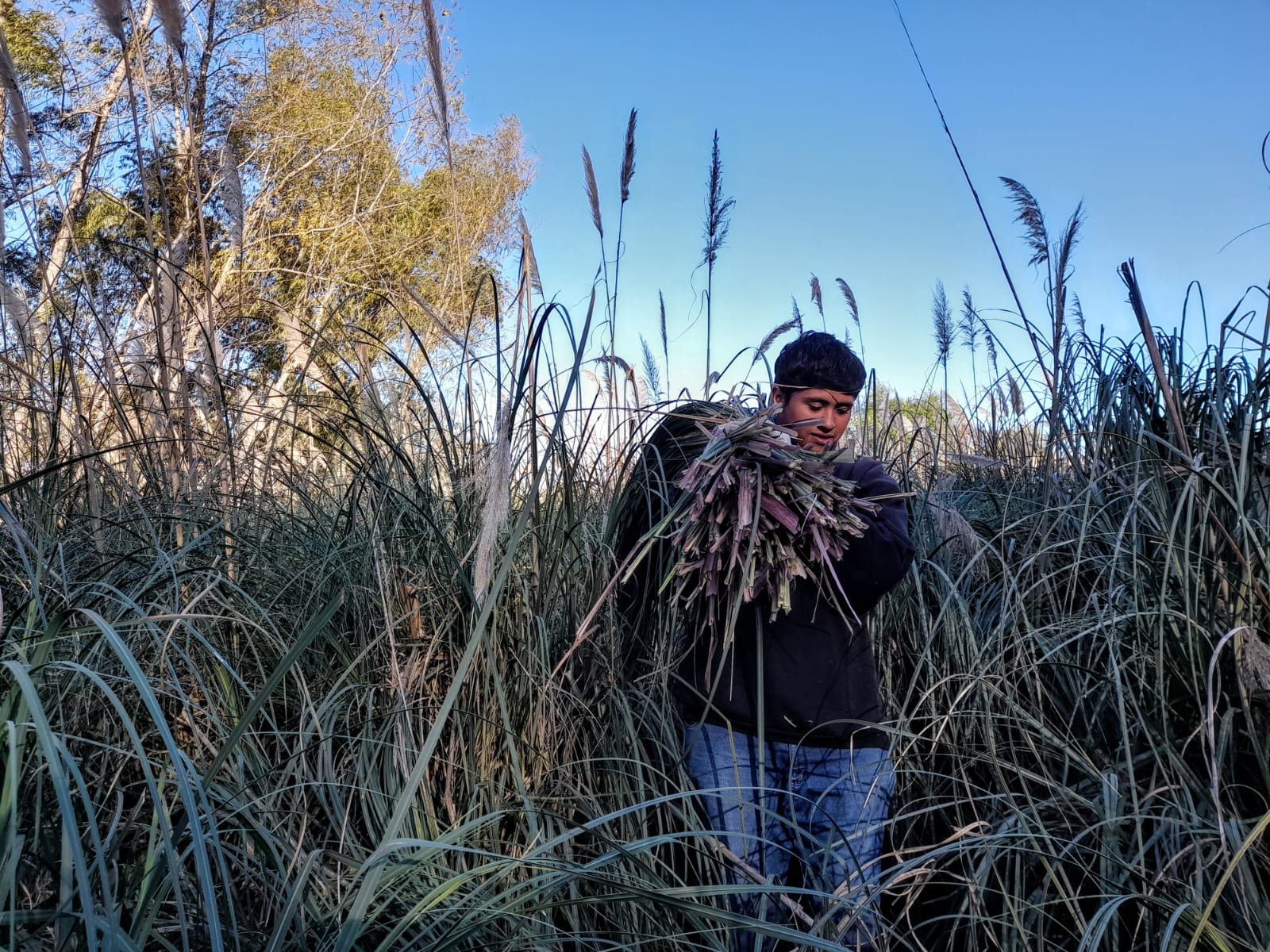 El último domingo 11 de junio, la prioridad fue cortar kapi’i ñarõ (paja brava) para finalizar el quincho comunitario, un espacio de suma importancia ya que es de uso cotidiano para los comuneros y comuneras y las visitas constantes que recibe el territorio.