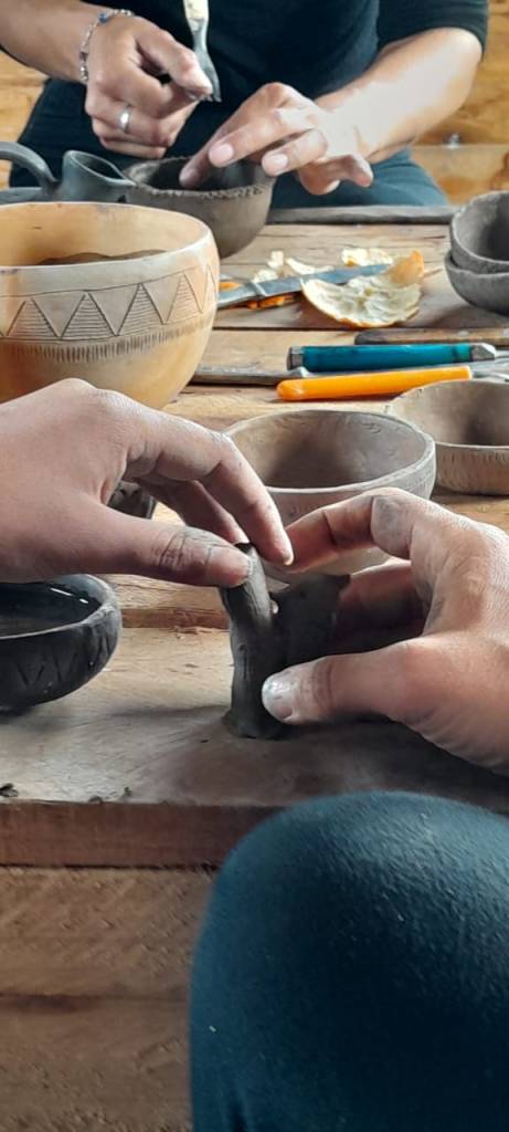 En este ciclo más reciente, las actividades son guiadas por Florencia Boroswki del Taller Amaru y Julieta Medina del Taller Anatiri, vecinas de Escobar y parte de una red de ceramistas que en 2021 investigó sobre los restos de vasijas resguardados en Punta Querandí y realizó varias recreaciones: cuencos completos con técnicas y diseños milenarios; algunos en exposición dentro del Museo Autónomo de Gestión Indígena y otros de uso cotidiano.