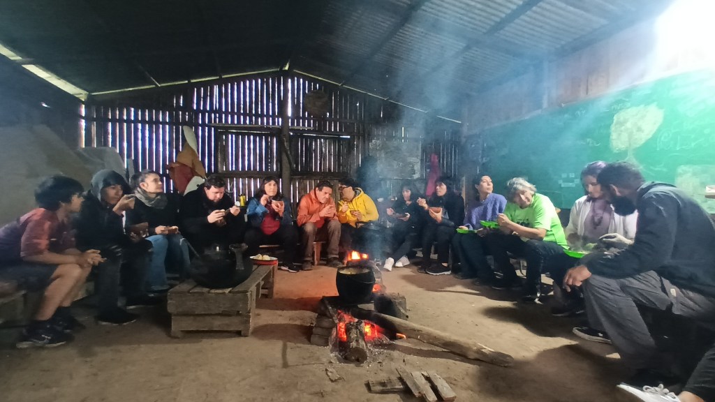 Mientras afuera diluviaba, se realizó la visita guiada por el Museo Autónomo de Gestión Indígena y luego se compartió el almuerzo alrededor del fogón en el Salón Comunitario Cacique Manuá, un momento de charlas y anécdotas.