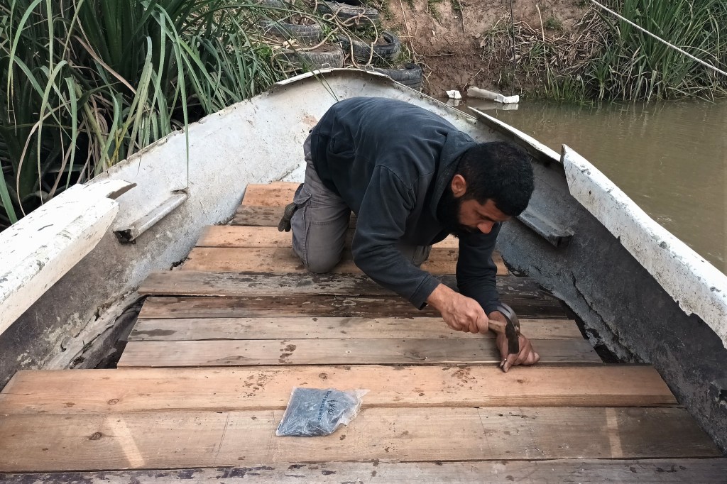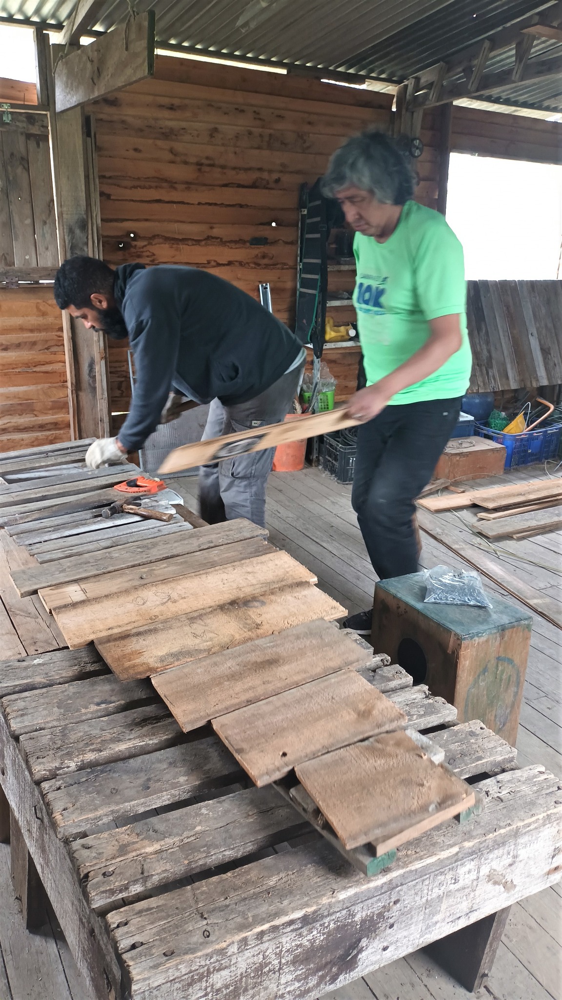 La recorrida continuó después por el resto del territorio comunitario, mientras los integrantes de Punta Querandí se organizaron para cumplir en distintas tareas: reponer el piso de madera del bote, el mantenimiento de la huerta agroecológica y cortar cañas para la cumbrera del quincho.