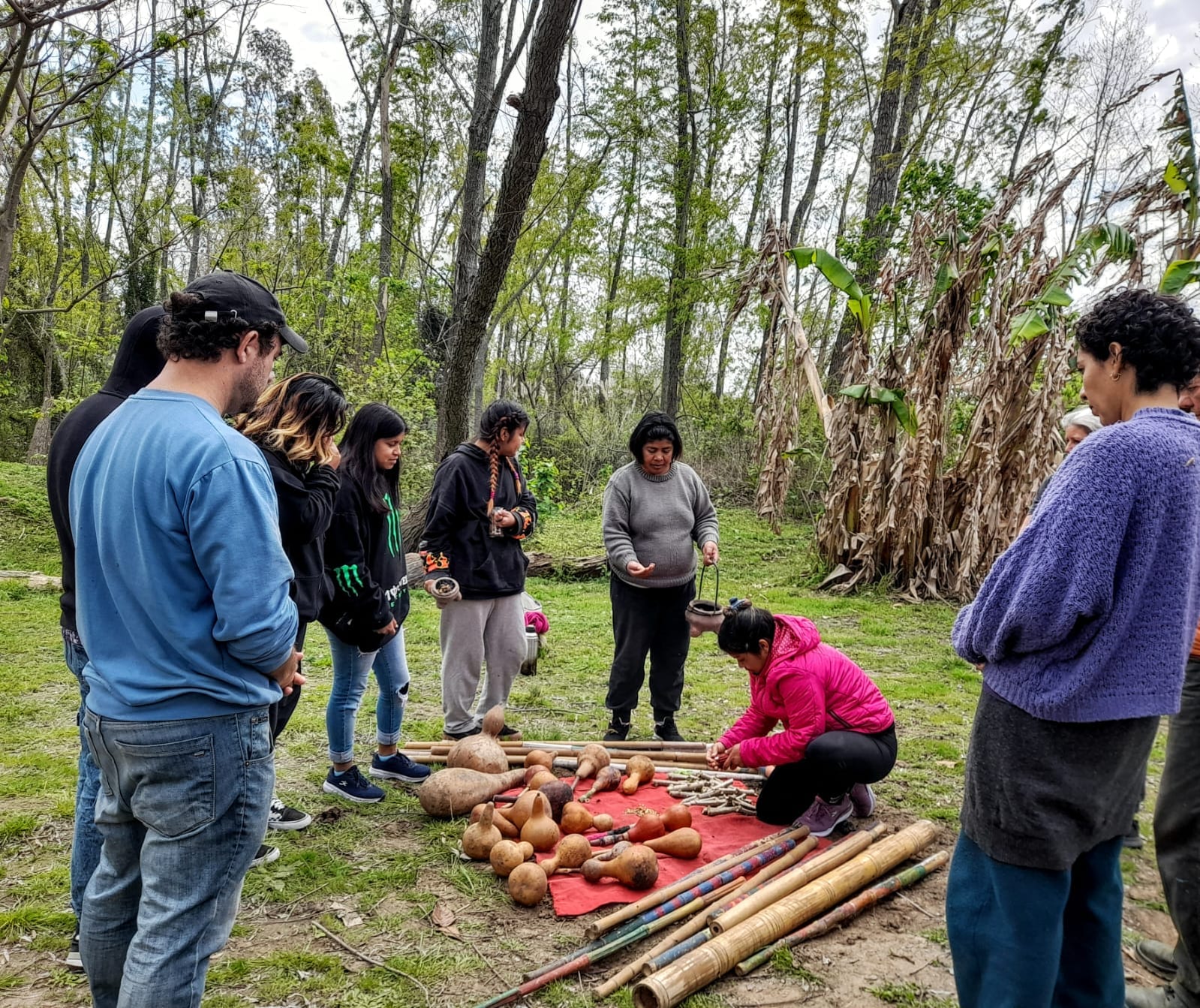 La relación de Punta Querandí con esta familia comenzó un año atrás, cuando integrantes de la comunidad dieron una charla en la Escuela Secundaria N°19 de Los Troncos y la estudiante mbya Priscila Alvarado, con mucho orgullo, se presentó en su lengua mbya guaraní. Así nació un vínculo que continuó en el verano con su participación a través de danzas y música en la celebración de Ñemongaraí. Y luego con diversas actividades compartidas, entre otras, el mantenimiento del Opy revocando sus paredes de barro y su presencia en la ceremonia andina del Inti Raymi.