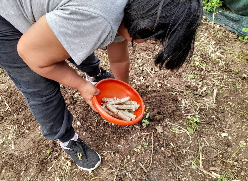 Después de realizar la sahumada, Rosi Benitez y su familia junto a los integrantes de Punta Querandí se dirigieron hasta la huerta donde sembraron maíz, mandioca, melón y sandía provenientes de la aldea Pa’i Antonio Martínez, del Municipio de Fracran de la provincia de Misiones.