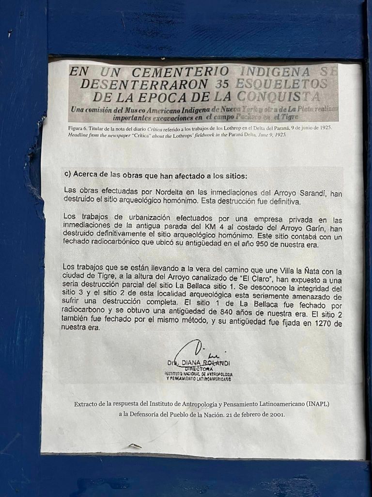 En 2022, el Instituto Nacional de Asuntos Indígenas aprobó la restitución de 42 ancestros y ancestras del sitio Arroyo Sarandí, espacio milenario destruido en los ’90 por Nordelta, y declaró «sitios sagrados» a Punta Querandí y La Bellaca.