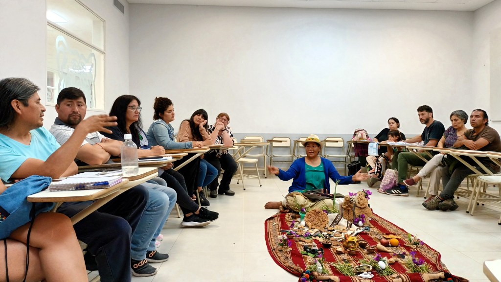 La clase especial de cosmovisión andina estuvo a cargo de la hermana quechua Sacha Sawila, vecina de Sarandí (Avellaneda) y experta en cocina milenaria y soberanía alimentaria, quien habló sobre el Ayamarq’ay Killa en el marco de noviembre, el mes dedicado a los difuntos.