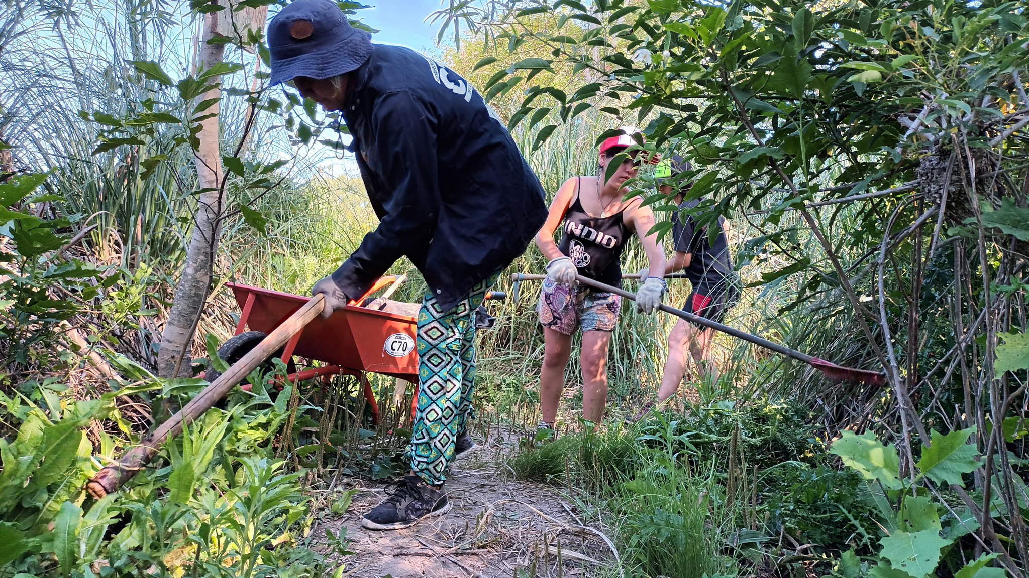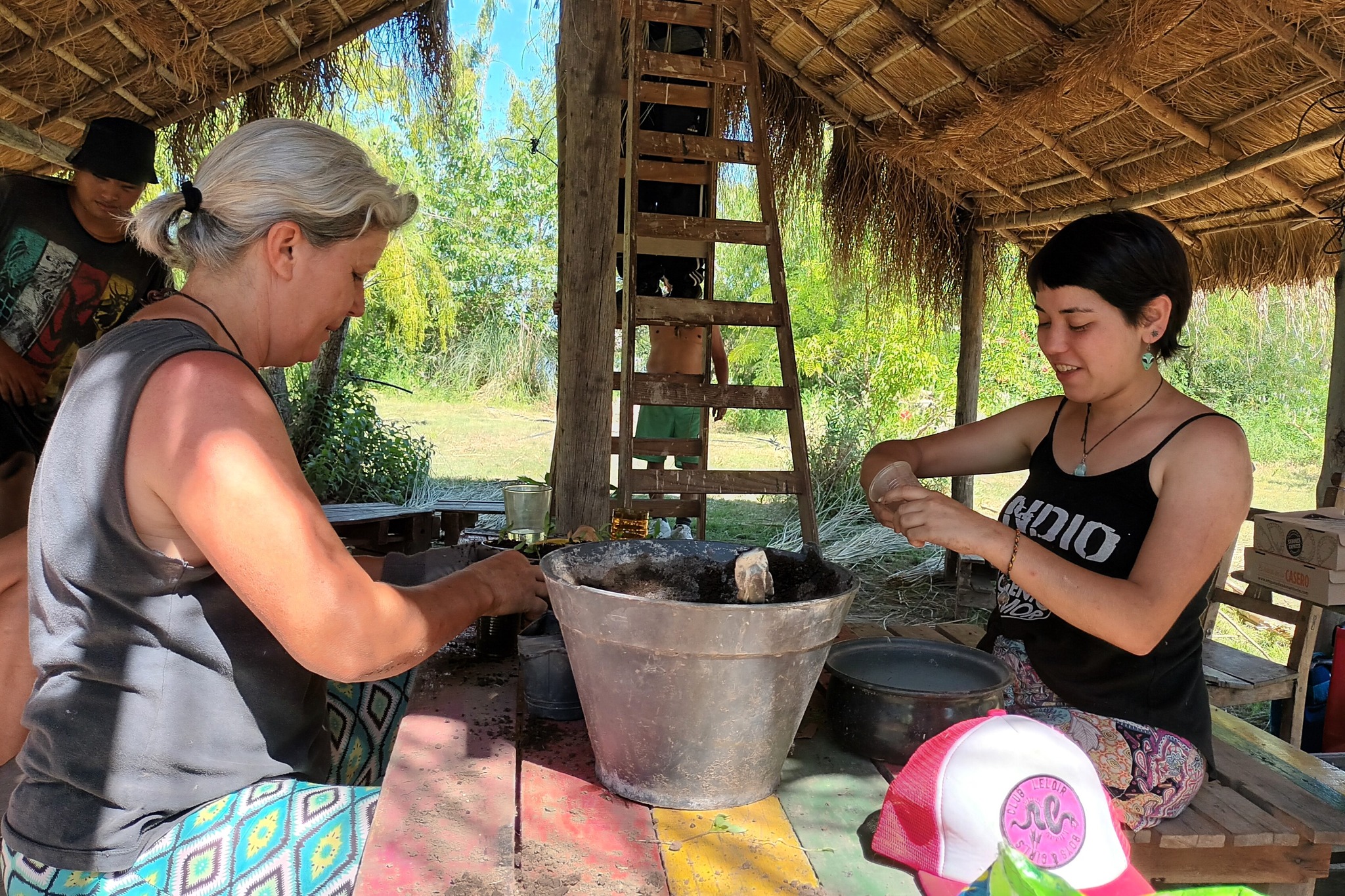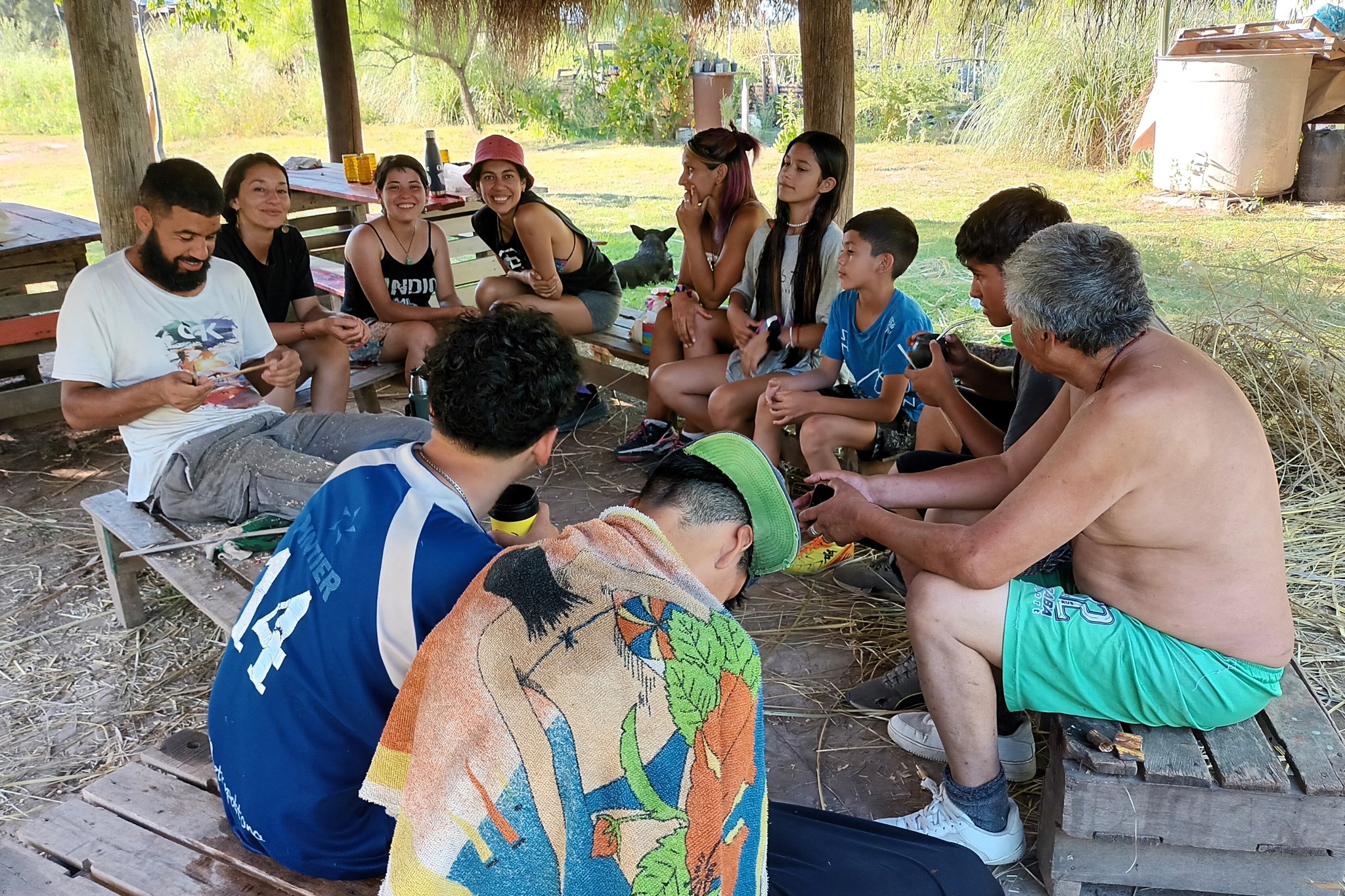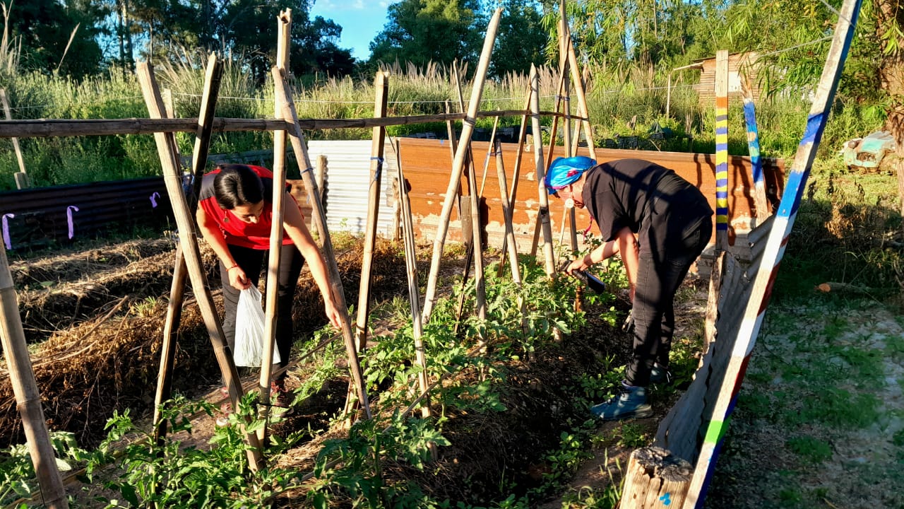 En relación a las tareas, un grupo continuó con el tejido de la cumbrera del quincho de paja brava, un objetivo que está por concluir. En lo que es la producción agroecológica, se hizo repique de pimientos. Y se desmalezaron algunos de los senderos.