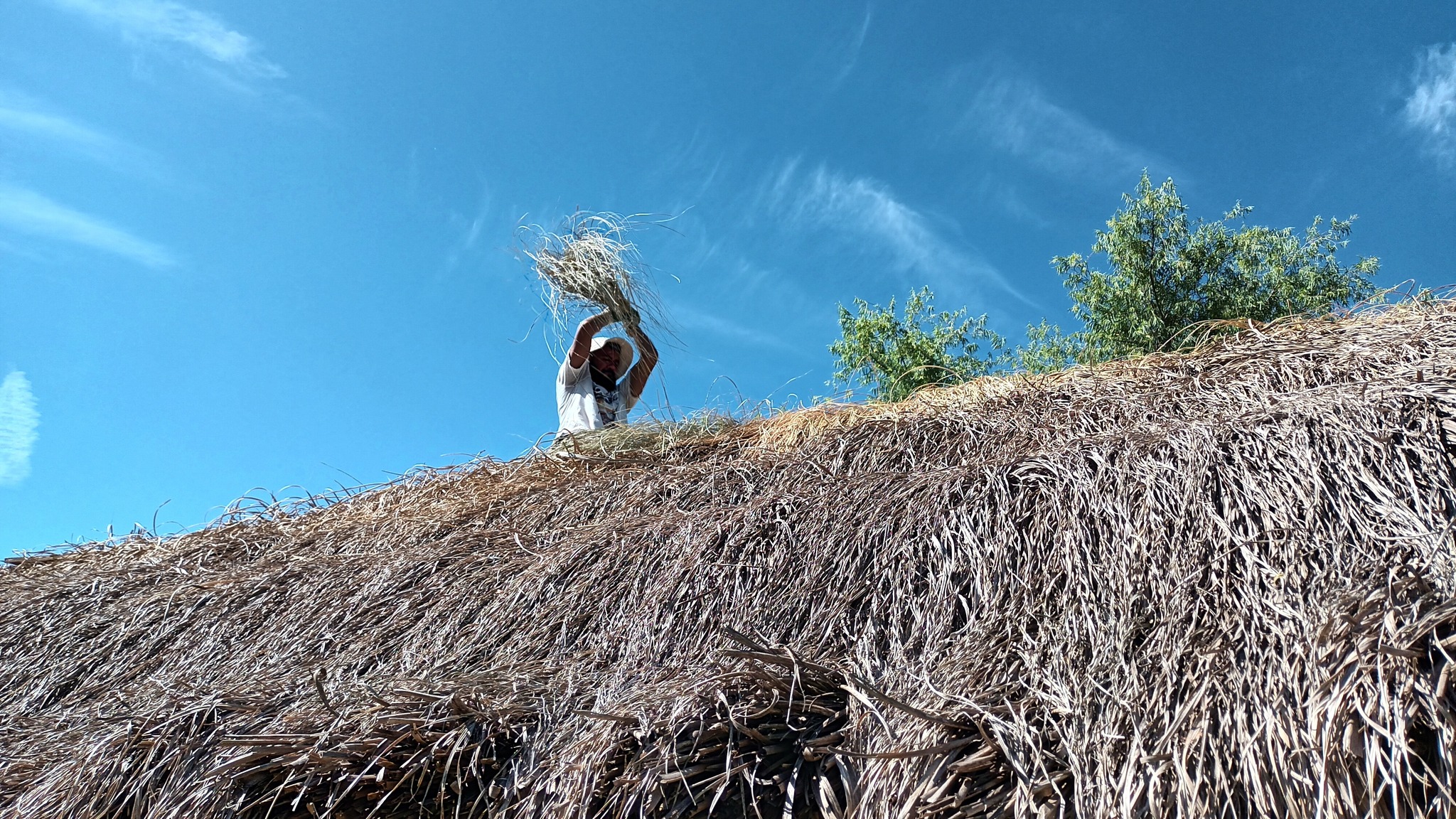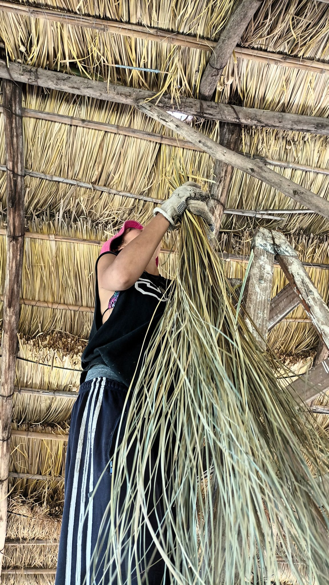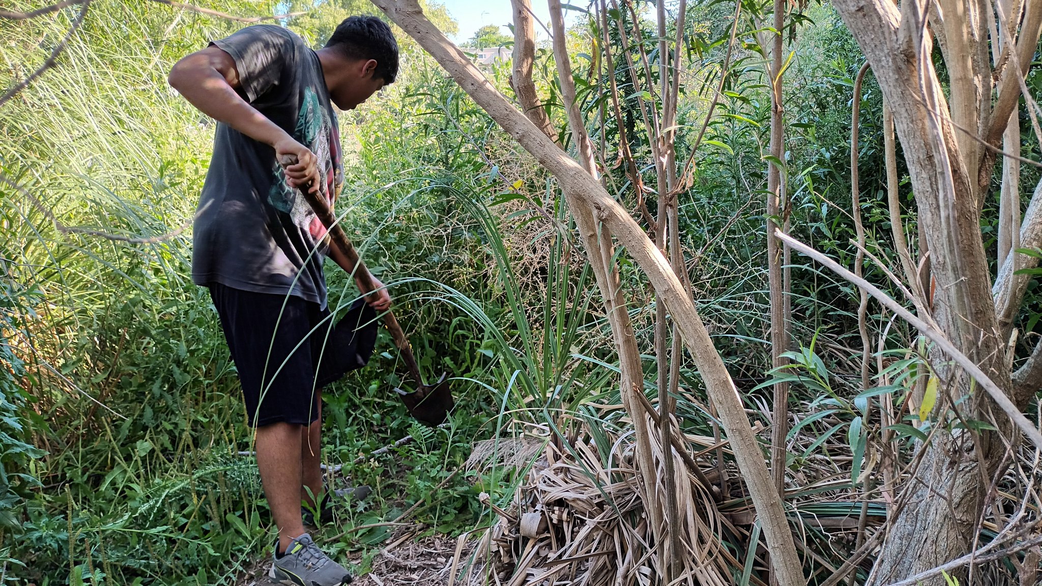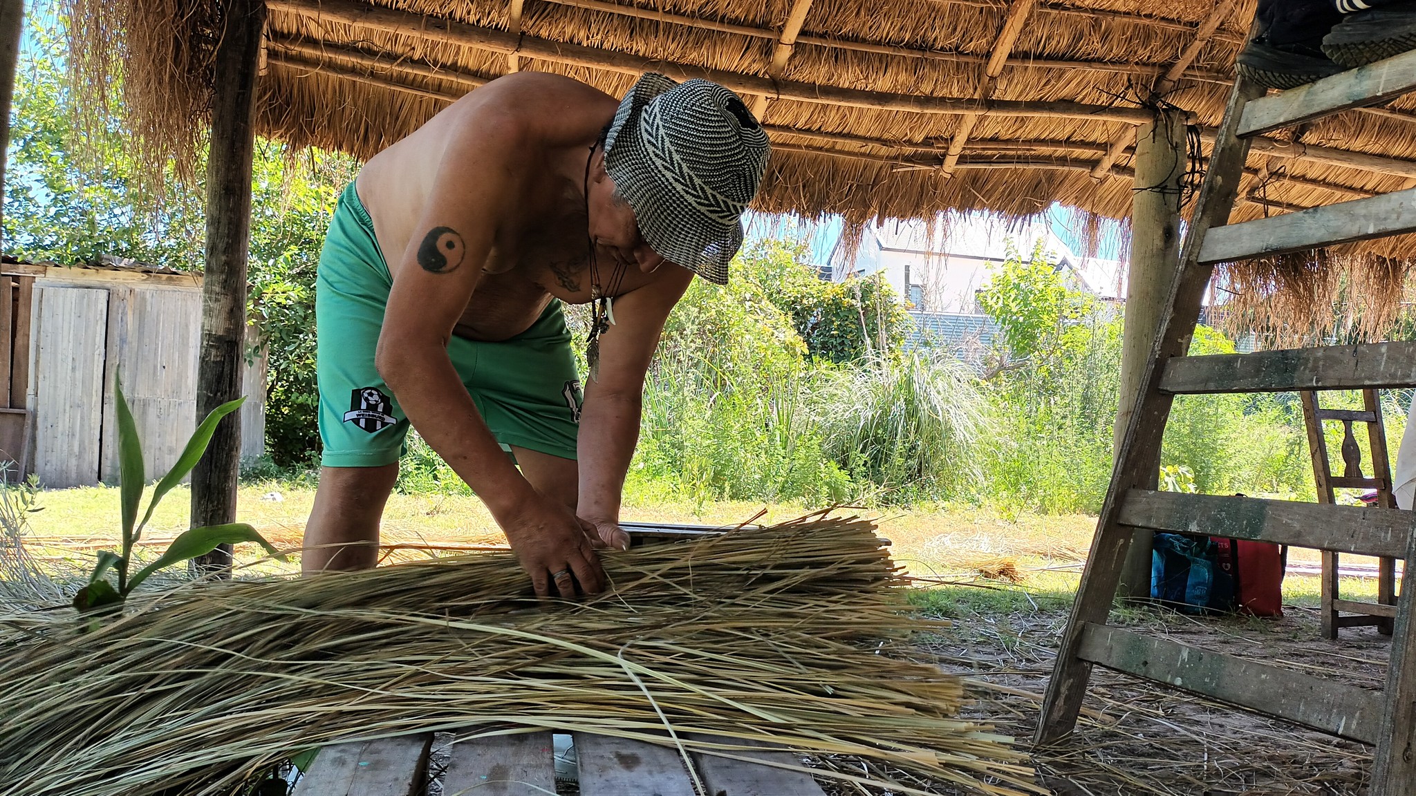En relación a las tareas, un grupo continuó con el tejido de la cumbrera del quincho de paja brava, un objetivo que está por concluir. En lo que es la producción agroecológica, se hizo repique de pimientos. Y se desmalezaron algunos de los senderos.