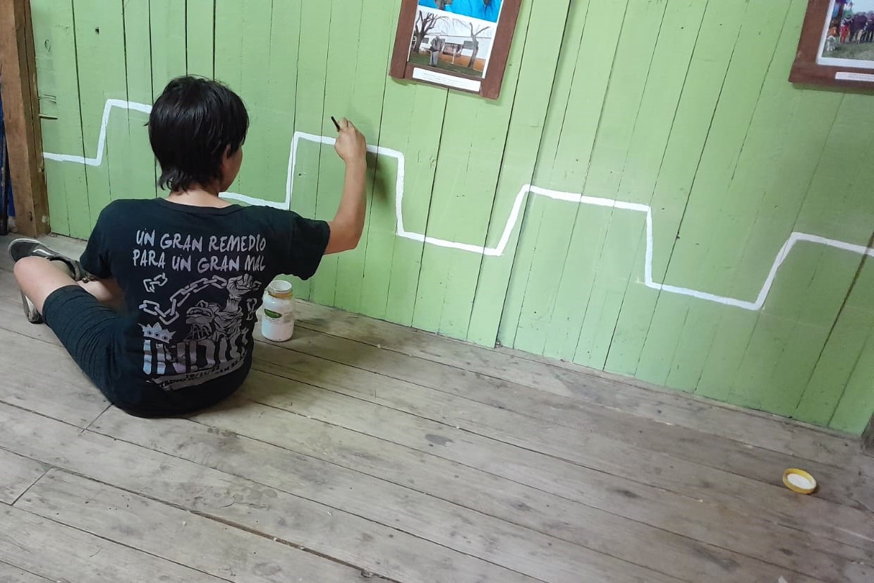 Al día siguiente, lunes 20 de noviembre (feriado), aseguramos las tomateras y fumigamos la huerta; y se avanzó con la decoración de las paredes del Museo Autónomo de Gestión Indígena.