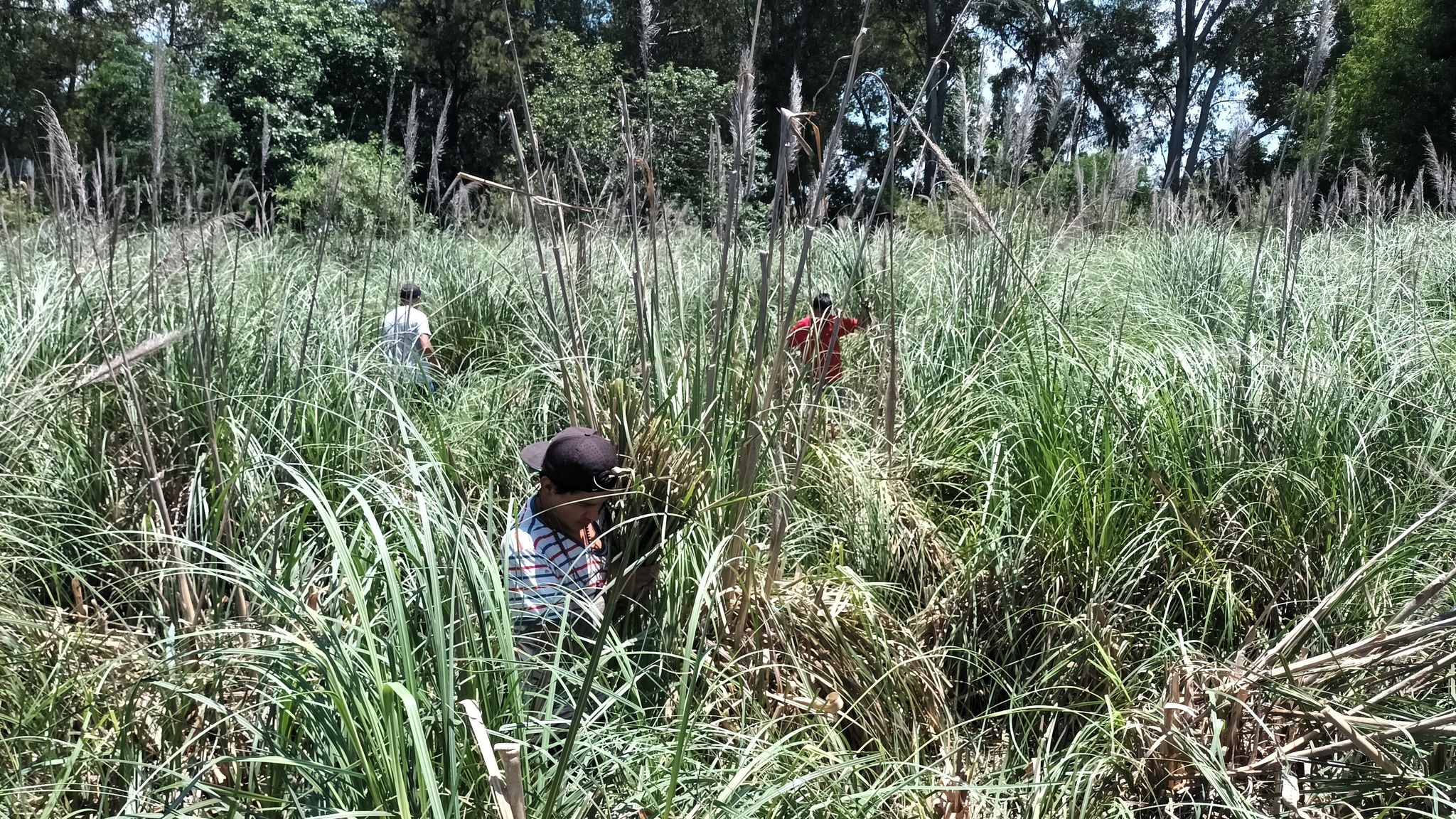 Entre las visitas, recibimos a integrantes de la Cátedra Abierta Intercultural, quienes se sumaron con mucho entusiasmo al corte de paja brava.