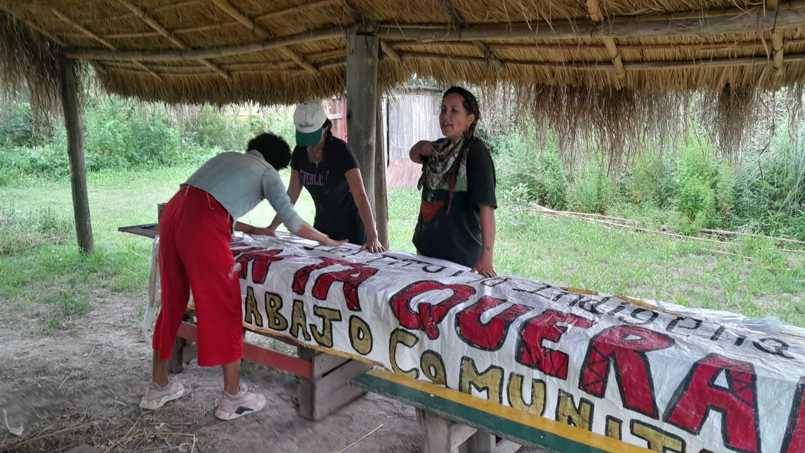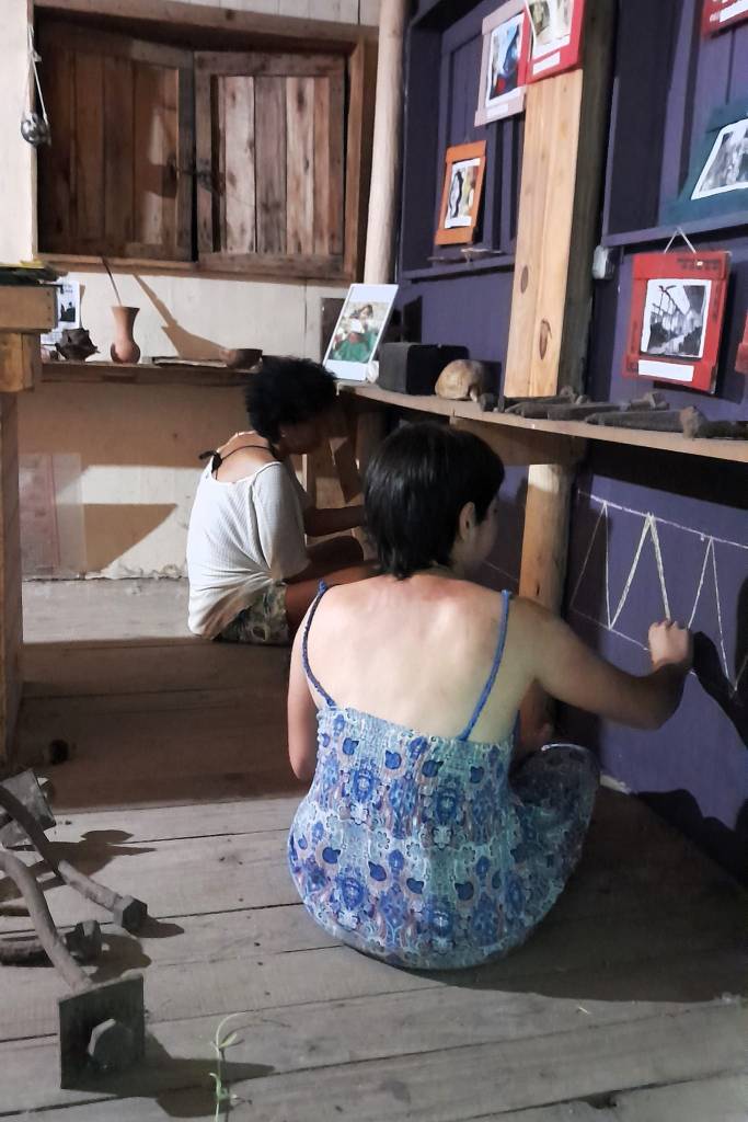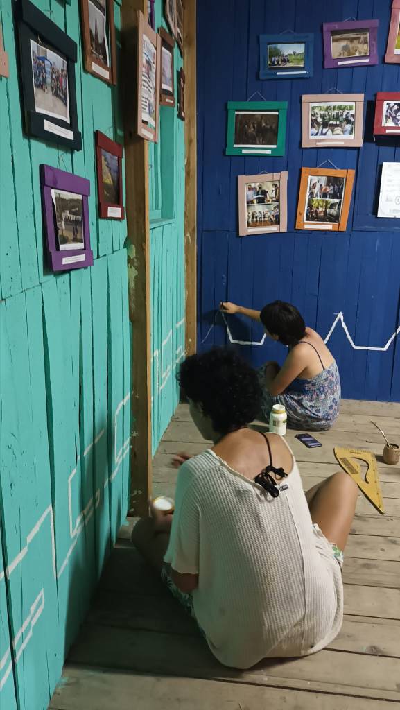La madrugada del domingo 17 de diciembre un temporal causó importantes destrozos en Buenos Aires y en Punta Querandí dejó daños leves: una chapa volada del Museo Autónomo de Gestión Indígena y algunos árboles caídos. Horas más tarde, mientras nos cubríamos de las lluvias, aprovechamos para ordenar y limpiar dentro del Salón Comunitario Cacique Manuá. La noche anterior habíamos continuado pintando guardas en las paredes del Museo. También, compartimos el fogón con el profesor de lengua moqoit Cristian Santos, quien viajó ese fin de semana a Tigre desde Chaco para finalizar el curso de idioma en la Comunidad Moqoit del Delta.