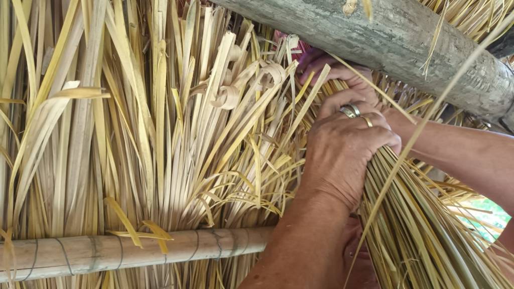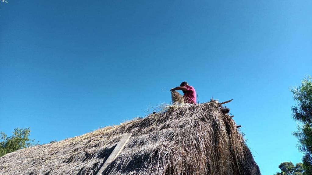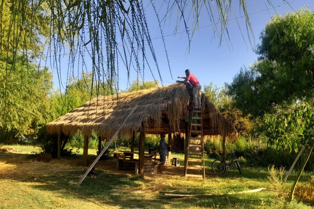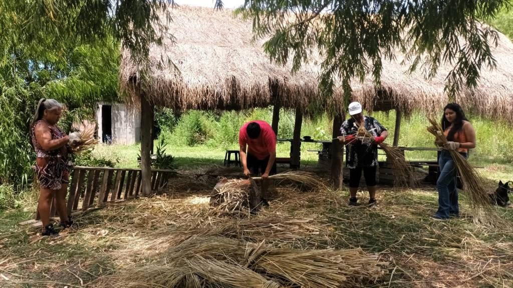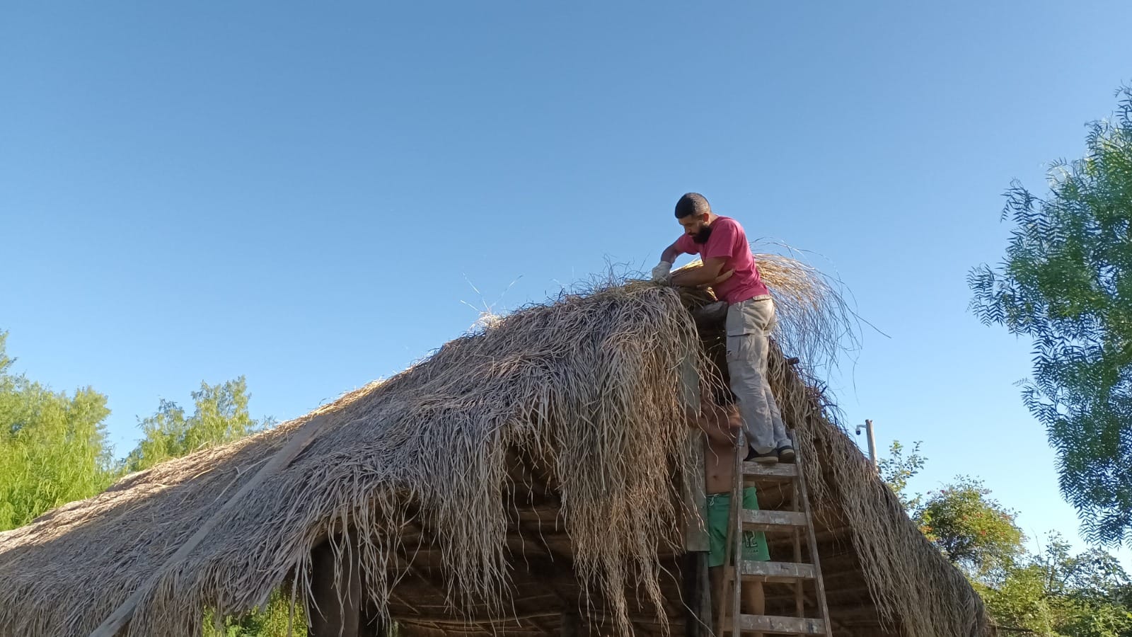 El domingo 21 de enero, culminamos uno de los proyectos centrales del último tiempo: la reconstrucción del quincho de paja brava. Esta obra reemplazó el primer quincho de paja levantado entre 2015 y 2016, el cual cumplió su ciclo luego de media década. Vale recordar, ese aprendizaje fortaleció a la comunidad y fue el puntapié para diversas construcciones que marcaron el camino hasta lograr el reconocimiento del derecho territorial.
