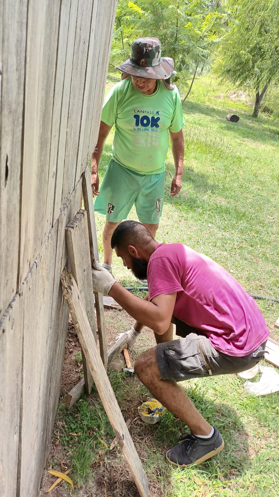 Otras tareas de la fecha fueron unas reparaciones en el techo y una de las paredes del Salón Comunitario Cacique Manuá. Y planificamos una importante obra para mejorar el perímetro de la huerta y el vivero, con el objetivo de darle más seguridad a la siembra.