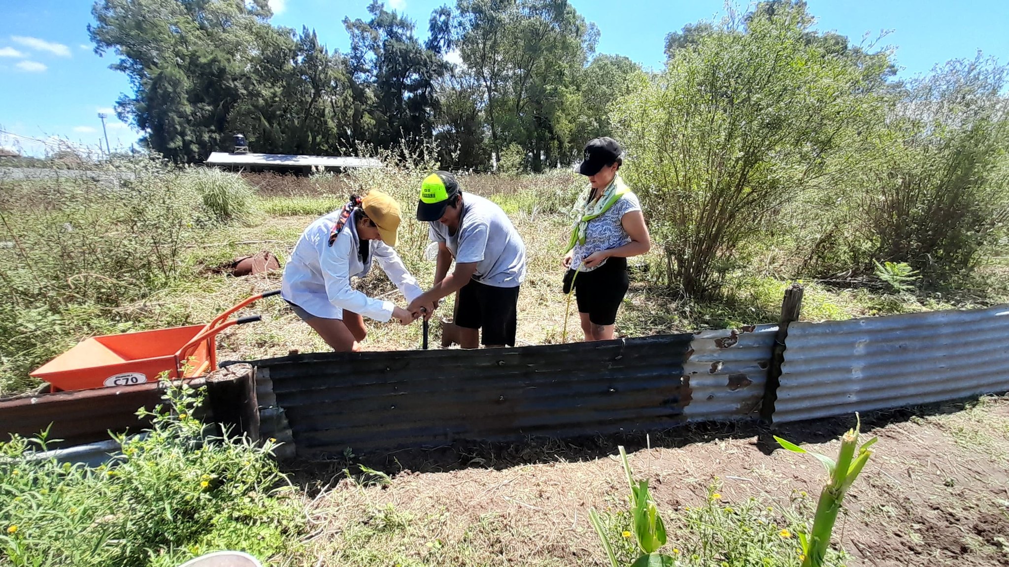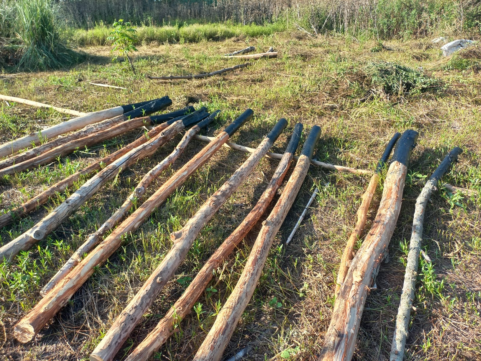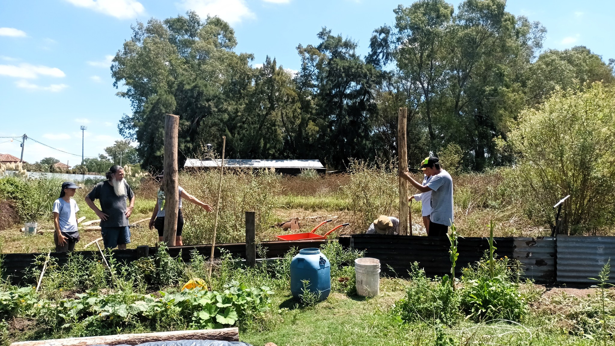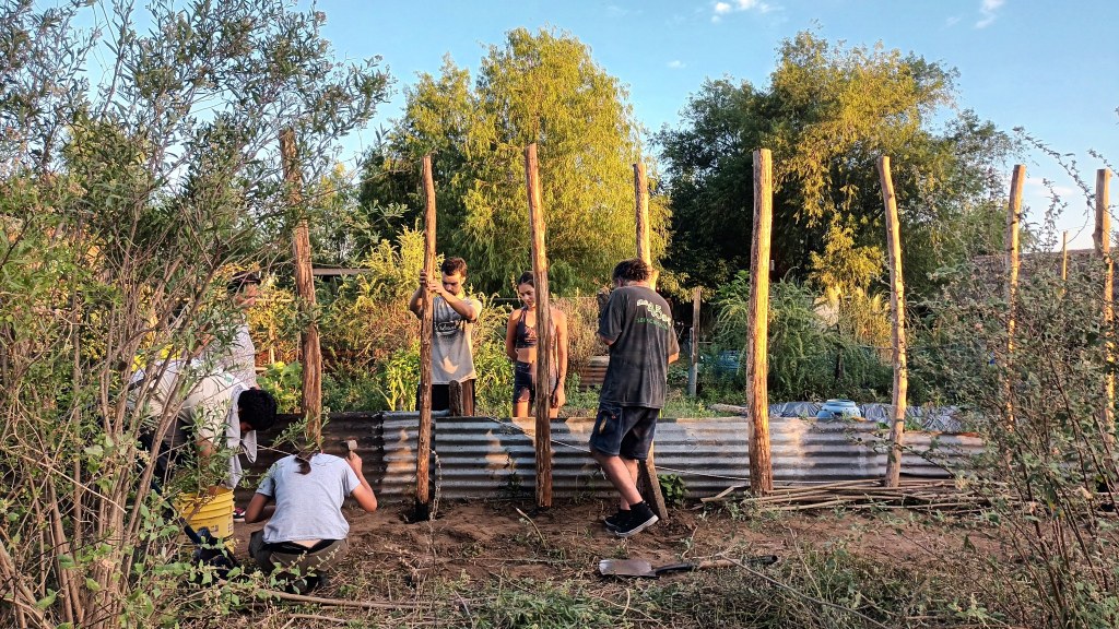 El domingo 11 de febrero, comenzamos a levantar la primera de las paredes de protección de la huerta, utilizando la madera de los árboles caídos en el territorio. Este nuevo cerco se realiza con una antigua técnica conocida como fajina, que es un entrelazado de ramas.