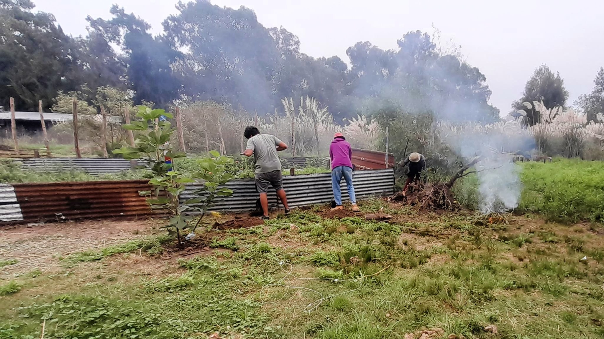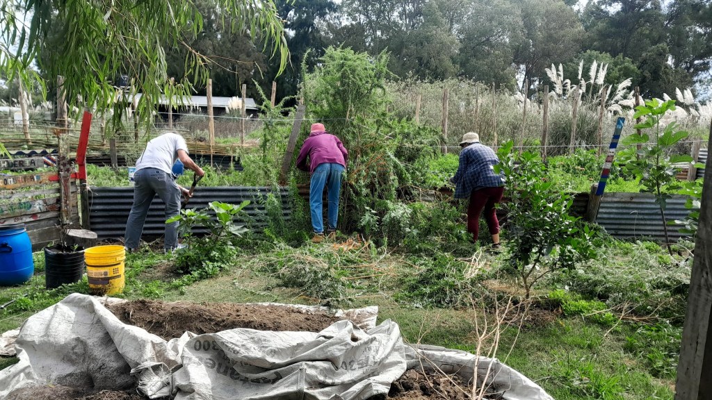 El domingo 31 de marzo las tareas en la comunidad de Punta Querandí estuvieron centradas en el proyecto de la huerta: desmalezamos alrededor y colocamos más postes para seguir con la construcción de un cerco que tiene el objetivo de proteger la producción agroecológica.