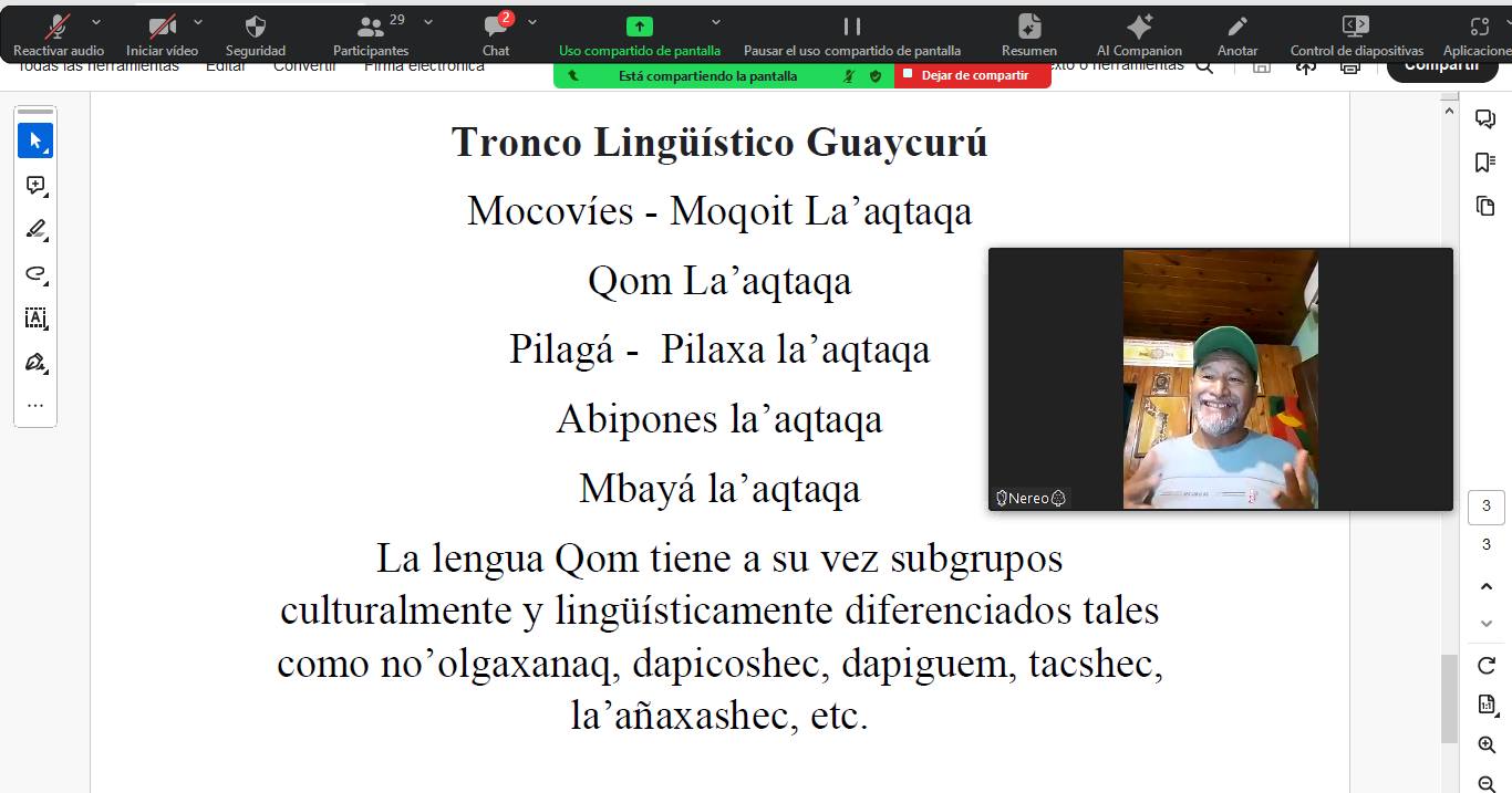 Mientras que el martes 26 de marzo, la yachachiq Josefina Navarro desde Jujuy dio comienzo al curso de Quechua. Por último, las clases de Qom la’aqtac comenzaron el jueves 28 de marzo, con el paxaguenataxanaxaic Mario ‘Nereo’ Charole desde Villa Río Bermejito, en la zona del Impenetrable Chaqueño.